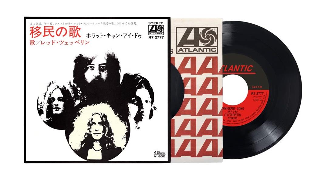 Réédition du 45 Tours japonais de "Immigrant Song" unique single extrait de l'album "Led Zeppelin III". Incluant "Hey, Hey, What Can I Do" en face B. Edition limitée à 19 700 exemplaires, artwork original.