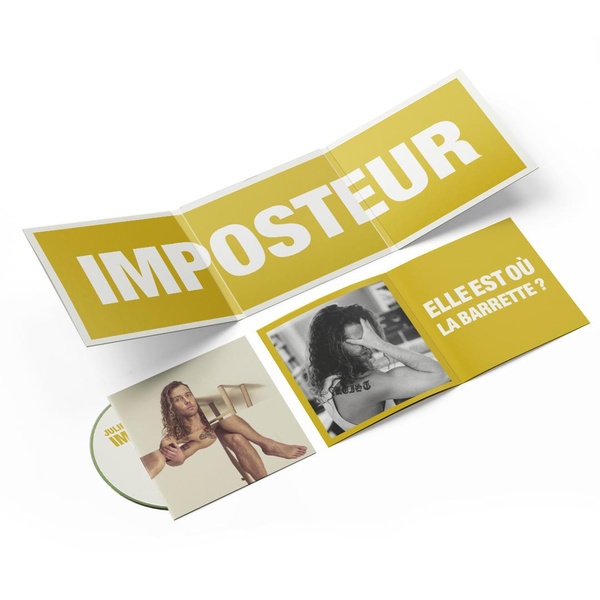 CD inséré dans un packaging cartonné 3 volets, de consistance rigide, avec sous-pochette imprimée et livret de 16 pages 17 titres + 2 titres bonus exclusifs (« Fais-moi une place » / « Elle est d'ailleurs ») Il y a 17 ans Julien remportait la Nouvelle Star 2007. Revisiter les chansons des autres, en transformant l'approche de celles-ci, était profondément nouveau pour l'époque. « Imposteur » est une boucle bouclée presque 20 ans après, la barrette a-t-elle rouillé dans cette chevelure qui a poussée, dans une époque qui ne sait plus distinguer le faux du vrai, le beau du laid, l'imposture de la légitimité. Relier l'instant présent à l'histoire des souvenirs. C'est ça finalement Imposteur.