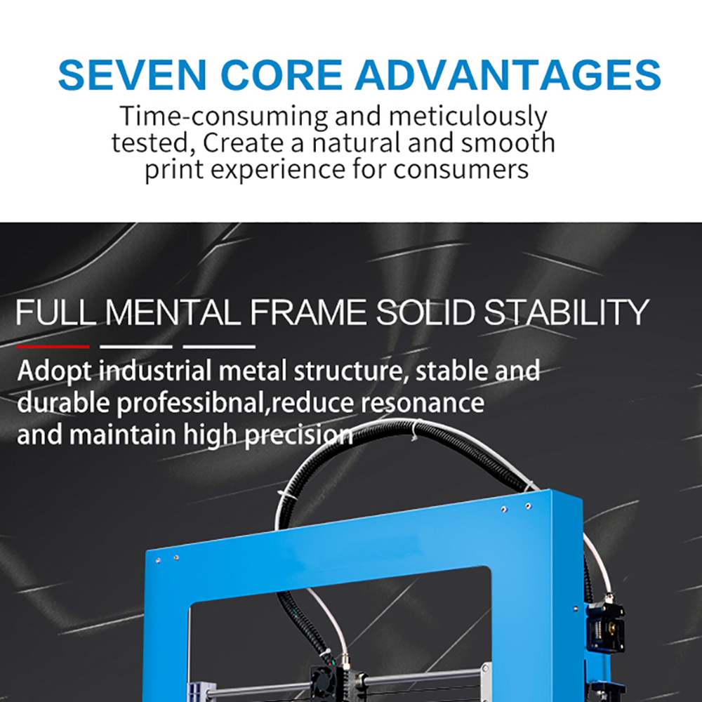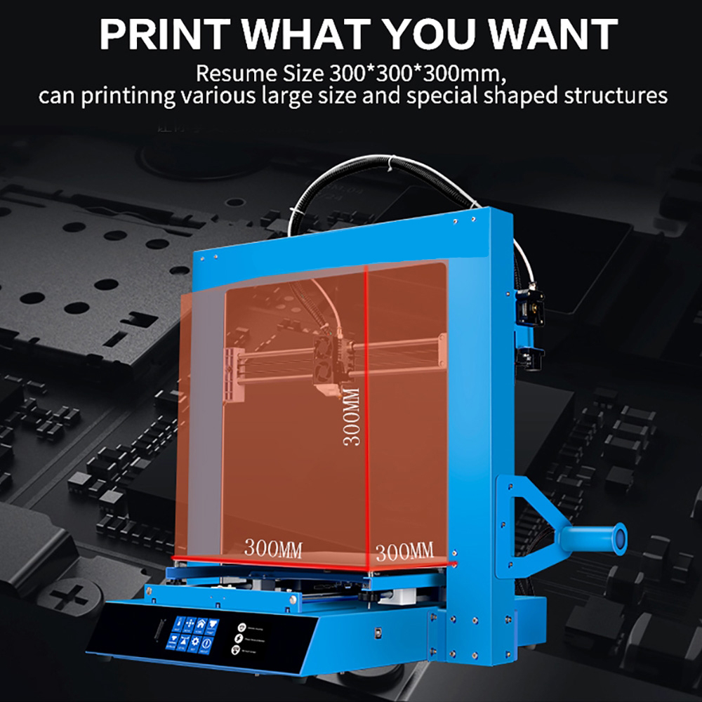 Celui-ci vous permet de vous adonner à des prototypages professionnels et à des créations DIY en toute liberté. Sa généreuse taille d'impression de 300 x 300 x 300 mm vous permet un nombre important de pièces de différentes structures. Équipé d'un nozzle de haute dureté, cet appareil vous permet de modeler des objets imprimés en haute résolution, ultra détaillés et avec une surface parfaitement lisse. Grâce à ses fonctions de pause, de recharge de filaments et de reprise d'impression, vous pouvez même réaliser facilement des pièces aux multiples couleurs. C'est le parfait instrument pour créer en grand-format des pièces d'art, de décoration, de soins de santé, de construction et autres. Envers et contre tout, elle est disposée à achever vos prototypes 3D. En cas de panne de courant, sa fonction de reprise lui permet de reprendre la découpe et la fabrication de pièces là où elle s'est arrêtée.