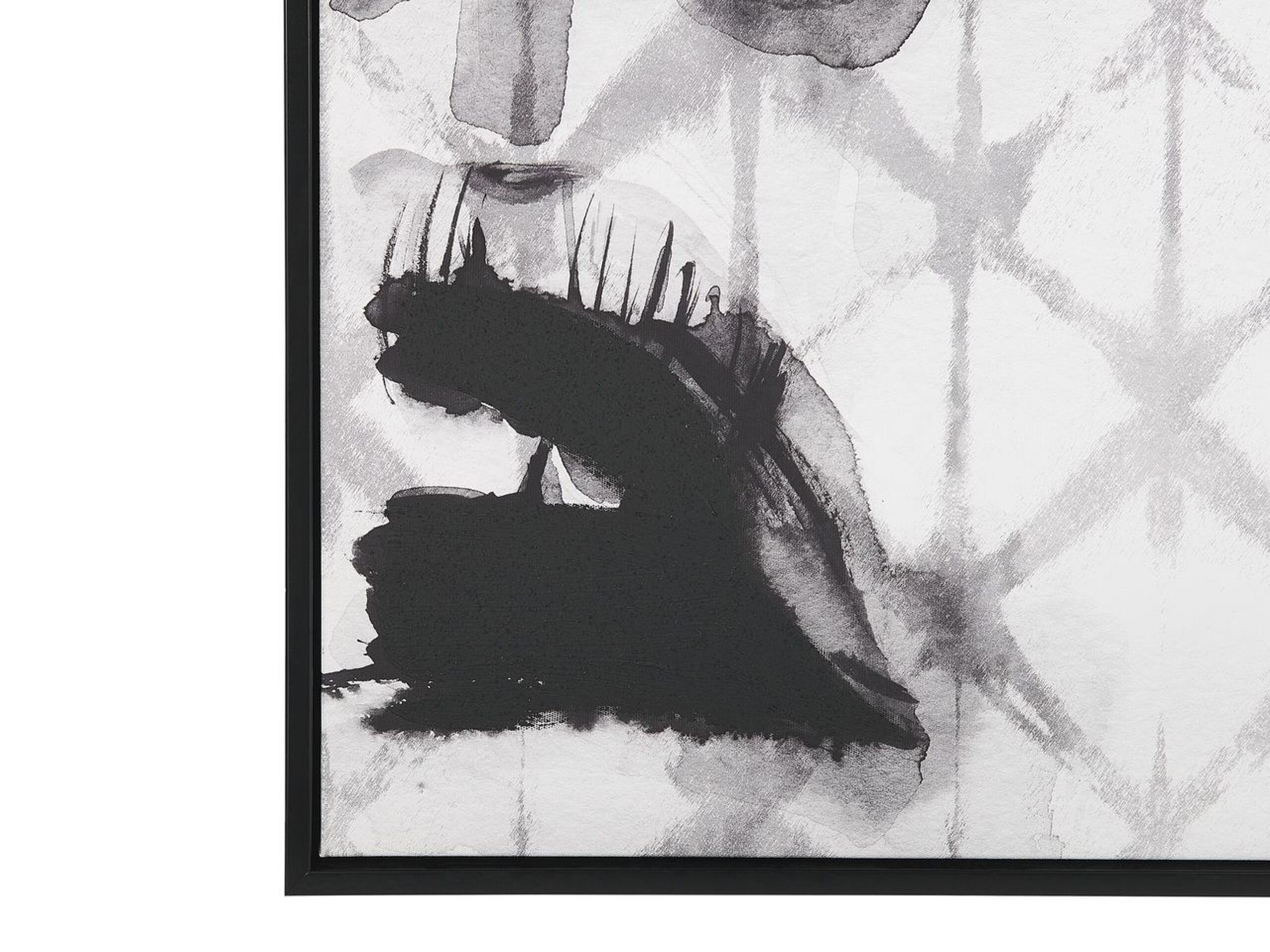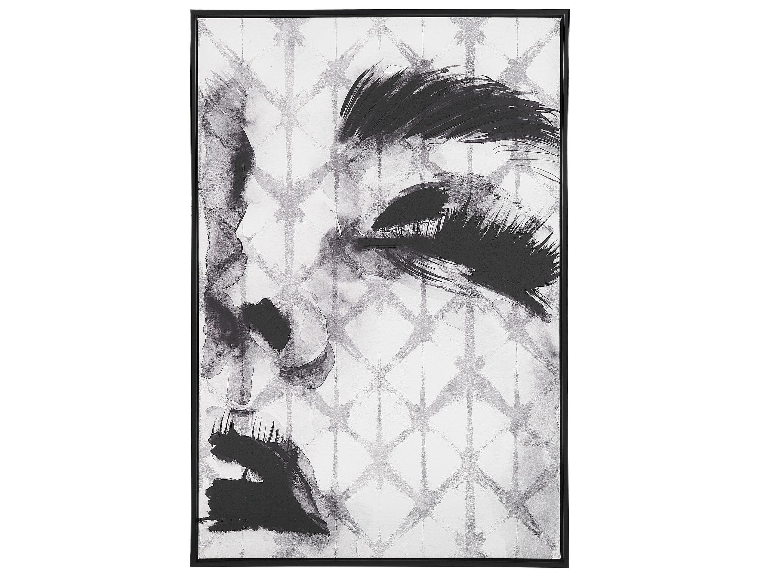 Toile avec imprimé artistique de visage féminin. Améliorez le look de votre mur avec cet art mural contemporain. L'impression de haute qualité sur la toile placée dans un cadre noir fin représente le visage flou d'une femme. Elle sera un merveilleux ajout à tout espace moderne et, grâce à ses couleurs basiques, elle s'accordera parfaitement avec d'autres éléments de décoration.