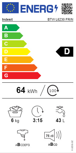 | Libellé | Indesit BTW L6230 FR/N machine à laver Charge par dessus 6 kg 1151 tr/min Blanc |