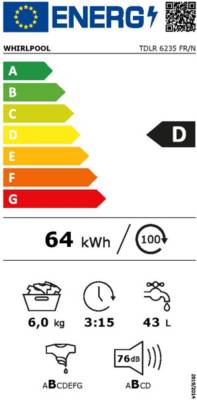 | Vitesse d'essorage maximum (Tours/min) | 1151 |