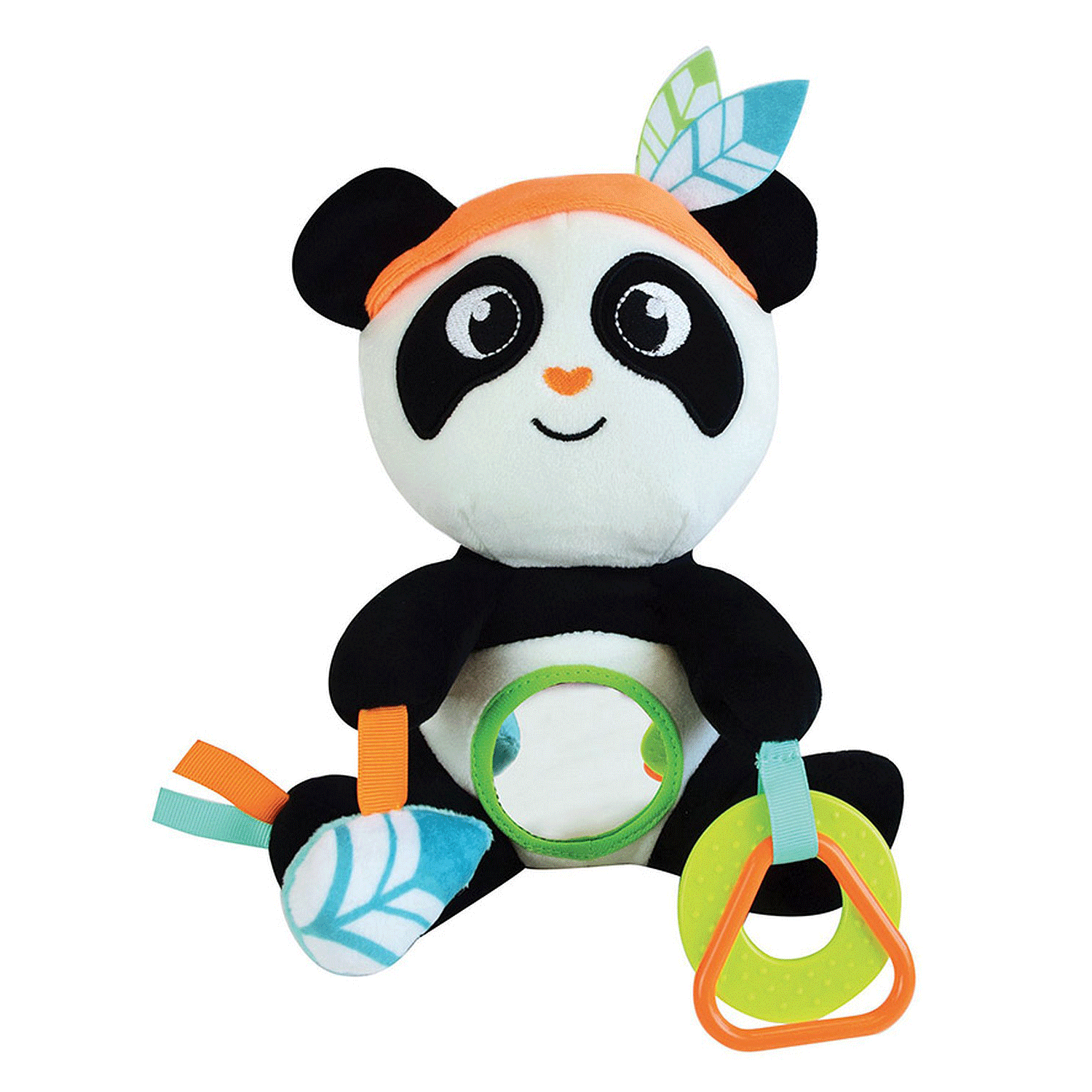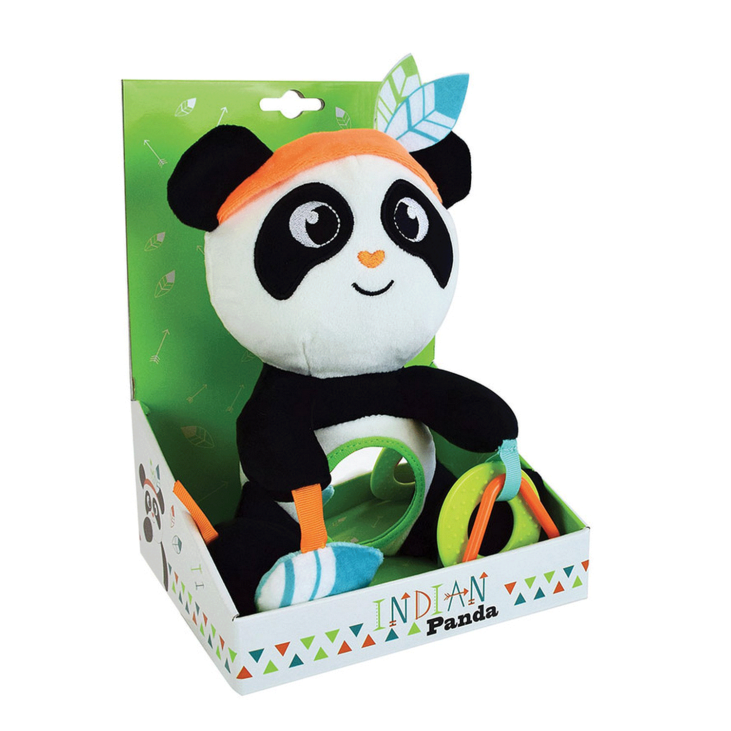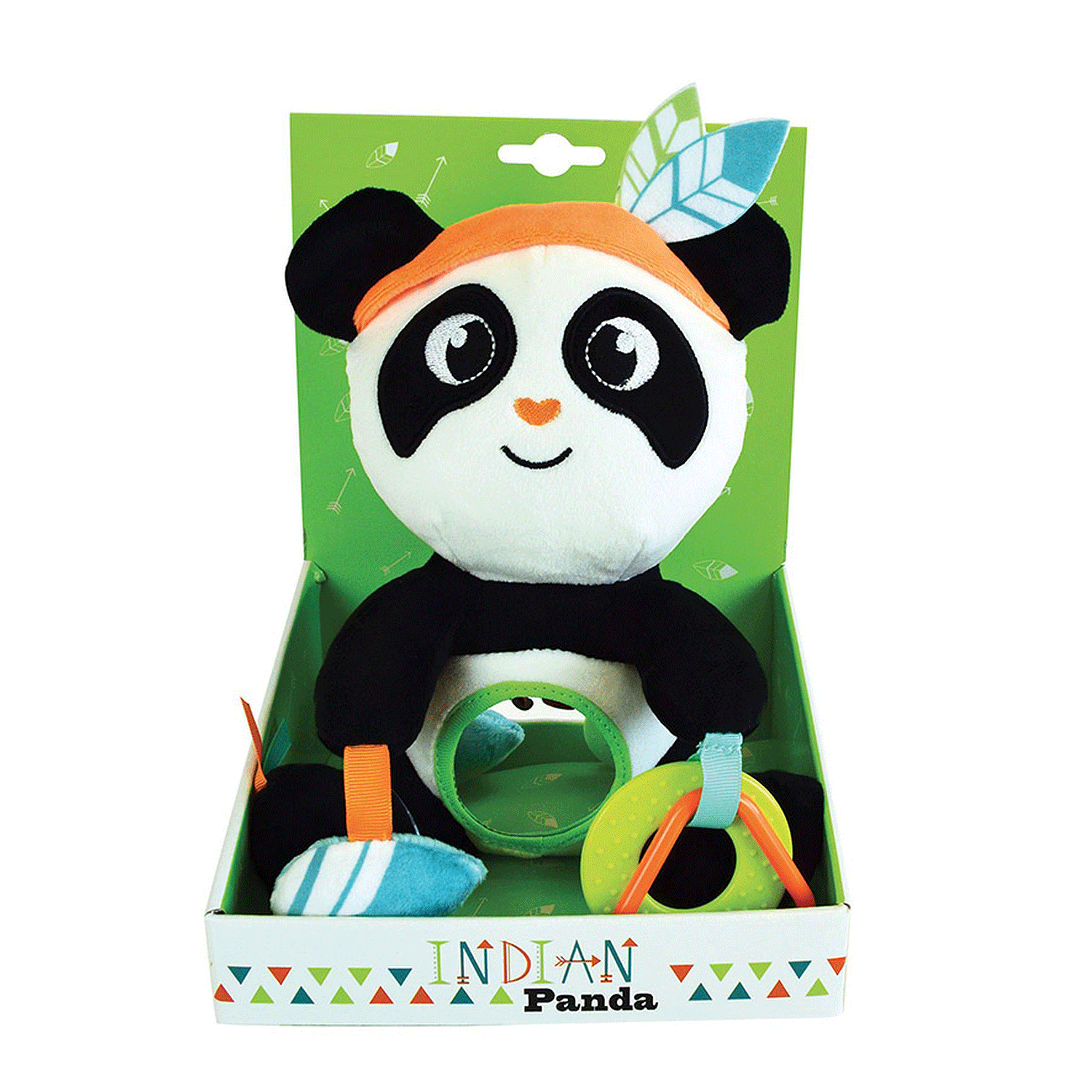 Cette peluche activit�s INDIAN PANDA mesure 22 cm. En plus de sa mati�re d'une extr�me douceur, elle poss�de des languettes strips, un hochet, du papier bruissant, un miroir et des anneaux de dentition pour amuser b�b� !