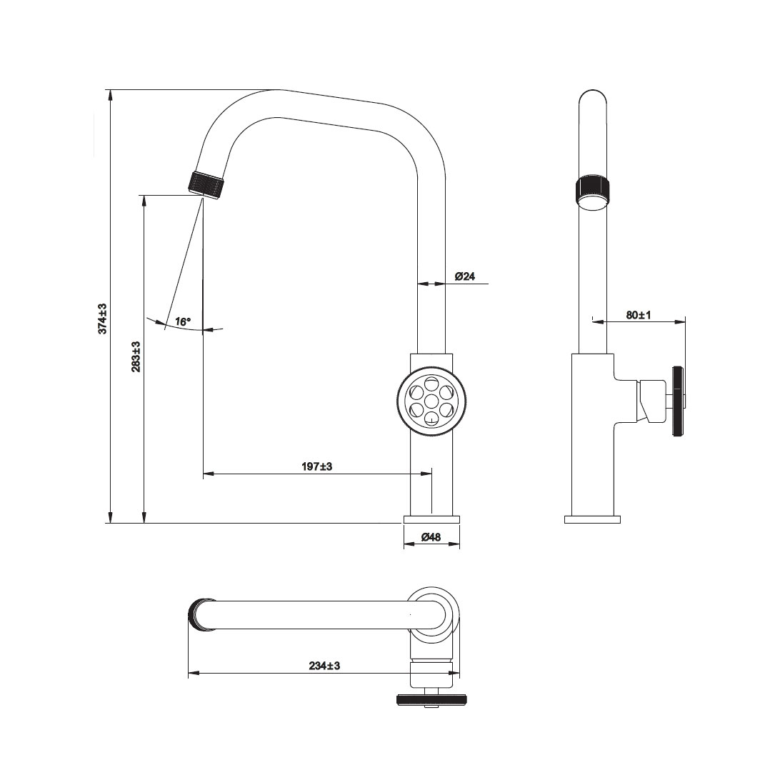 Vérifiez que la longueur du bec est compatible avec votre évier (voir dessin technique)