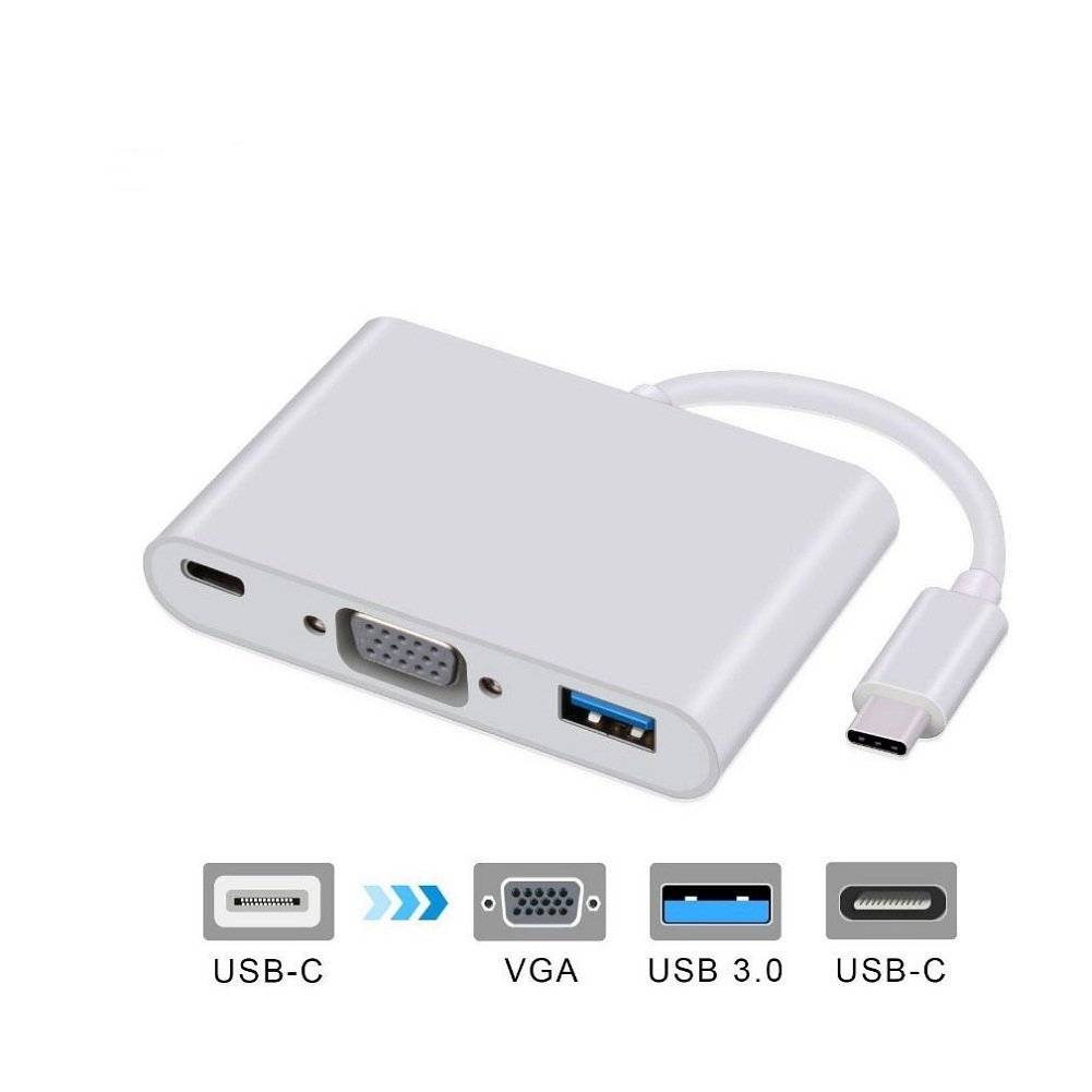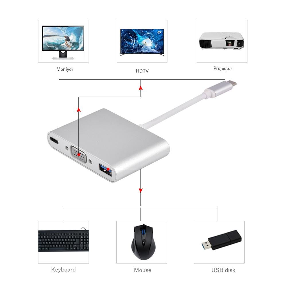 L'adaptateur USB 3.1 Type-C a VGA + USB3.0 + Type-C / F vous permet de connecter votre ordinateur avec un port de type C a un moniteur / projecteur / TVHD avec port VGA et autres peripheriques (souris, disque flash USB, etc.) avec port USB