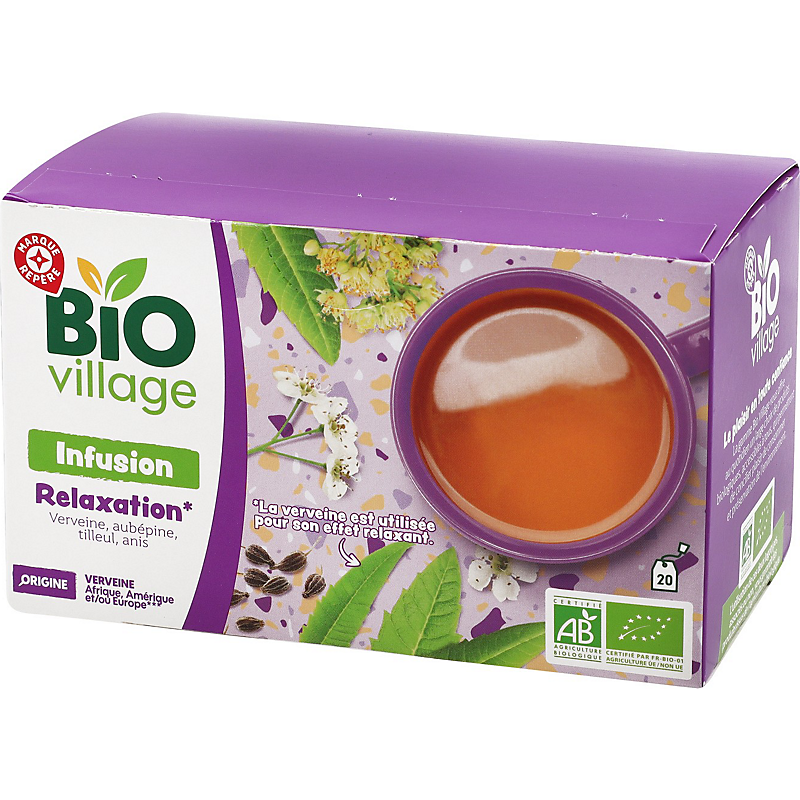 Infusion relaxation bio (tilleul/verveine/aubépine et anis) 20 sachets - 30 g - BIO VILLAGE