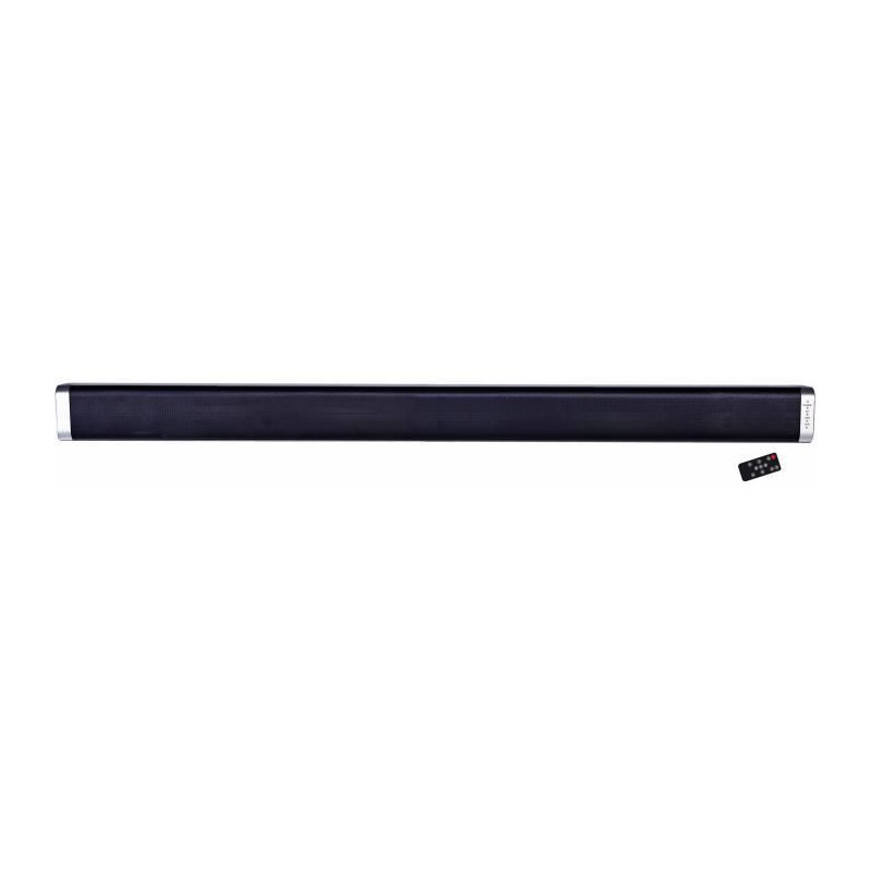Barre de son bluetooth 60 Watts - Port USB 2.0 - Sortie RCA - Portée bluetooth 10 metres - Télécommande, adapateur secteur et câble RCA fournis - Accroches murales au dos - Finition silver et laqué noir -