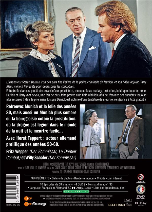 L'inspecteur Stefan Derrick, l'un des plus fins limiers de la police criminelle de Munich, et son fidèle adjoint Harry Klein mènent l'enquête pour démasquer les coupables. Entre trafic d'armes, prostituée assassinée et proxénètes, escroquerie au mariage,exécution, hold-up et tueur en série, Derrick et Harry vont devoir, une fois de plus, faire preuve d'un flair infaillible afin de résoudre des enquêtes toujours plus retorses ! Mais le pire arrive lorsque Derrick est victime d'une tentative de meurtre, vengeance ? Acte gratuit ? Liste des épisodes : 1 - Trafic d'armes 2 - Le Chantage 3 - Courrier de nuit 4 - L'Intrus 5 - La Petite Ahrens 6 - Dernier rendez-vous 7 - Paix intérieure 8 - Attentat contre Derrick 9 - Le Tueur de la nuit 10 - Un homme en trop.