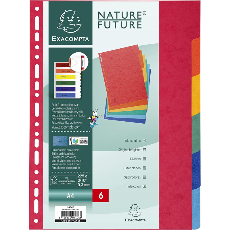 | Libellé | Intercalaires A4 - 6 Positions - Carte Lustrée 225G - Exacompta |