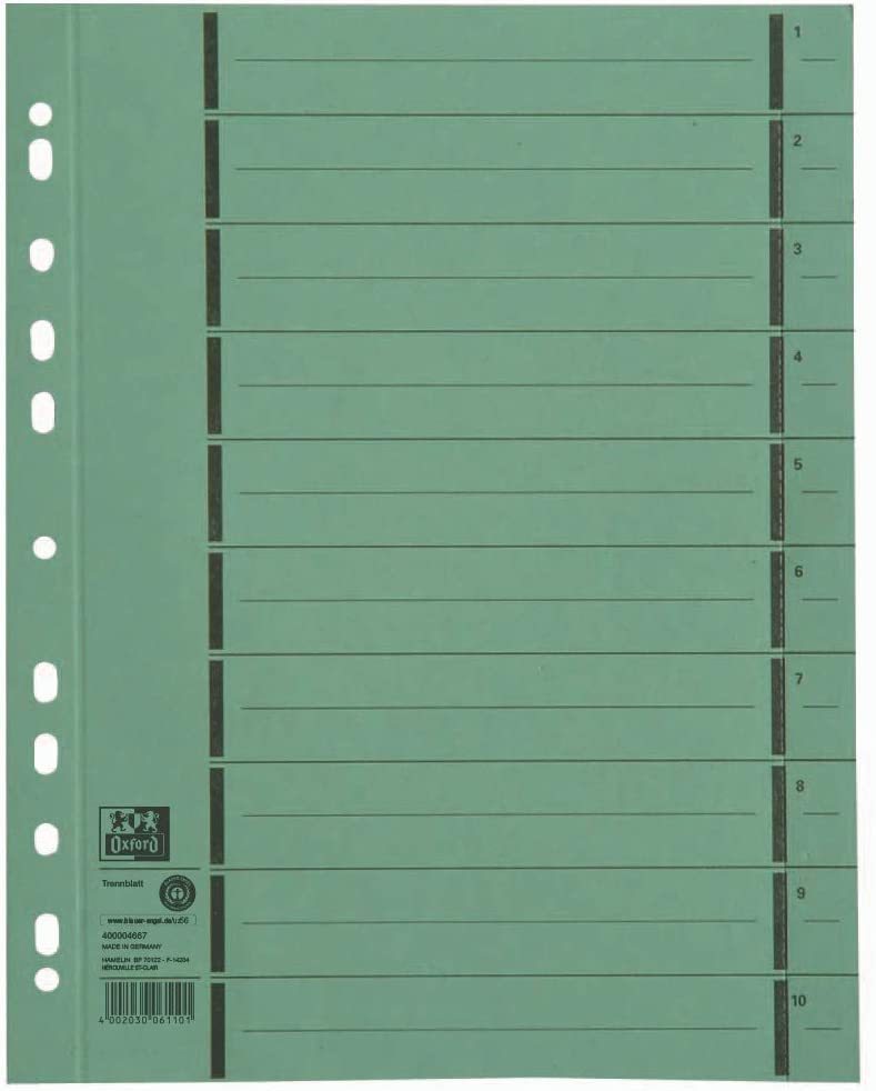 OXFORD - Intercalaires avec perforation - A4+ - Vert