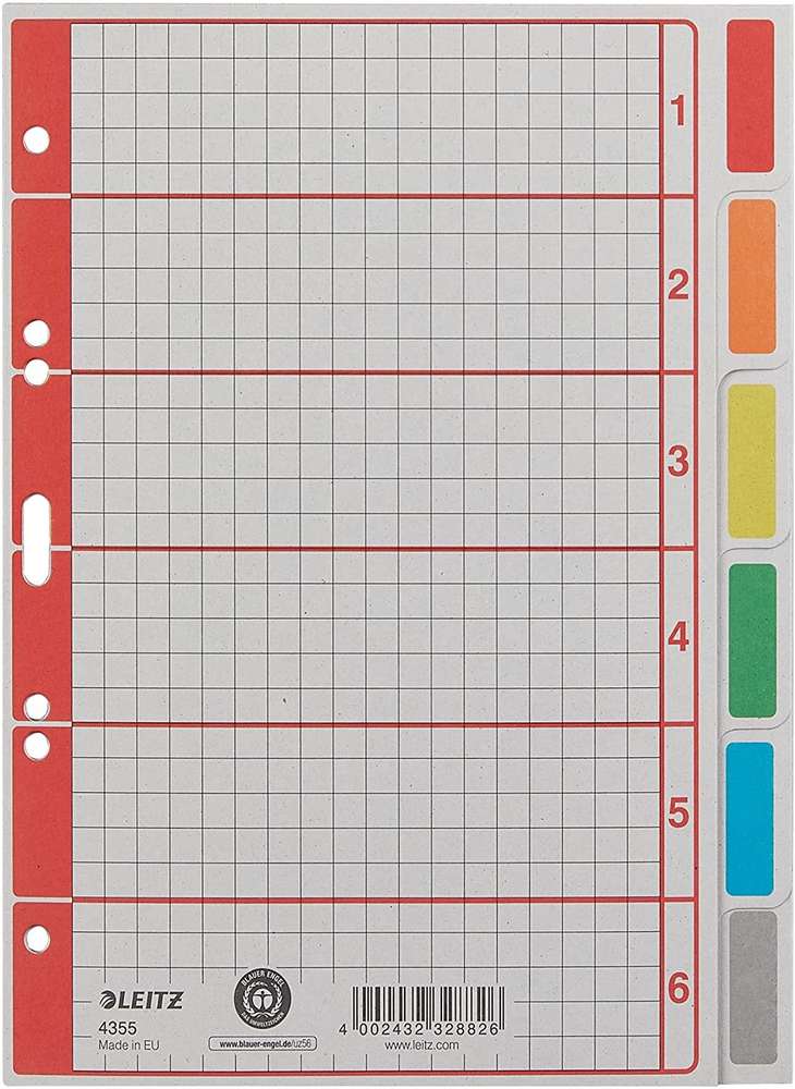 LEITZ - Intercalaires en carton extra solide - A5 - 6 touches