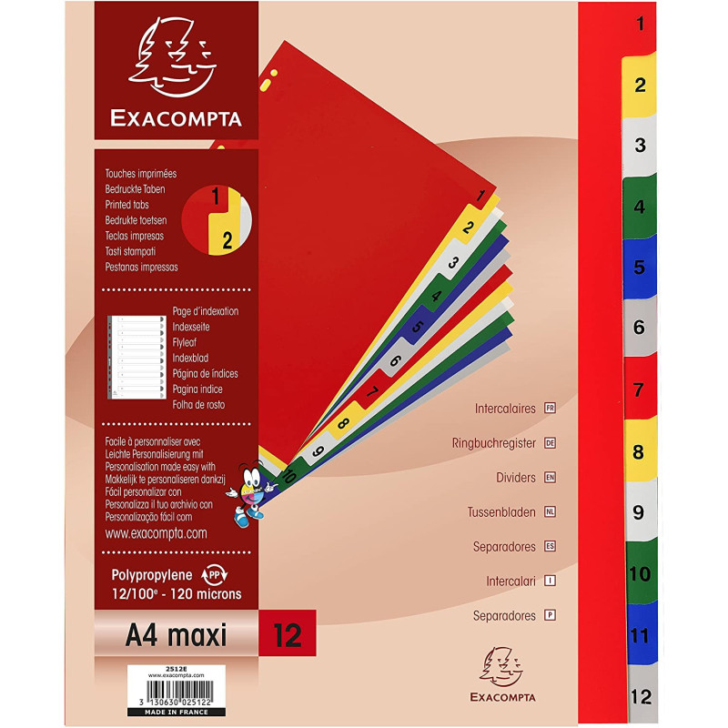 | Libellé | Intercalaires Polypro - 12 Positions - 1 À 12 - A4+ - Exacompta |