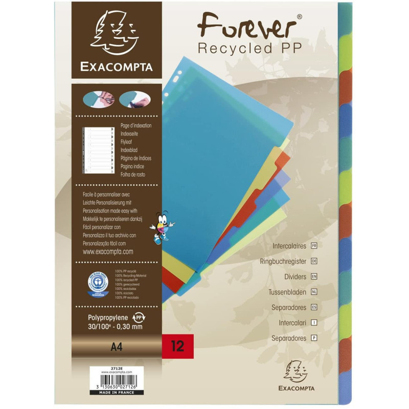 | Libellé | Intercalaires Polypro - A4 - 12 Positions - Forever - Exacompta |