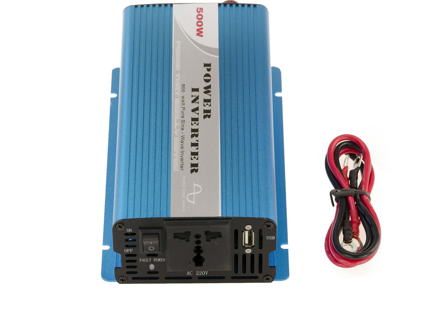 INVERSEUR 500 WATTS CONVERTIT LE 12V EN 220V PUR SINUS Utilisation : Pour disposer d'une prise secteur en 220V à partir d'une source en 12V. Le signal électrique émis par un inverseur ""pur sinus"" est plus régulier que celui fourni par un inverseur classique (ces derniers sont d'ailleurs appelés ""quasi sinus""). Ceci est très important pour une utilisation avec les appareils inductifs qui sont sensibles et/ou necessitent un fort courant au démarrage (exemple :réfrigérateur/congélateur, pompe, machine à laver, écran plasma ou LCD, ordinateurs, matériel de mesure, ?). Ce modèle se relie au 12V par bornier. Descriptif : Parametres Tension / Intensité en entrée Tension : 12V - Plage acceptée de 10V à 15V +/- 0.5V - Intensité nécessaire : 42A Tension de sortie Prise secteur AC 220V + Prise USB en 5V. Puissance de sortie stabilisée 500 WATTS Puissance de sortie maximale en crête 1000 WATTS Fréquence du courant en sortie 50Hz +/- 0.5Hz PURE SINUS WAVE - DISTORSION < 5% Efficacité 94% Température de fonctionnement -10 à 50°C Alarme de sous-voltage à 11 +/- 0.5V Coupure en cas de sous voltage à 10 +/- 0.5V Coupure en cas de sur voltage à 15 +/- 0.5V VENTILATION Forcée (Par ventilateur) + Passive (Corps Aluminium) CORPS Corps en aluminium CABLAGE BORNIER DIRECT Dimensions 250mm(L)X150mm(L)X76mm(H) Poids 1.700 Kg