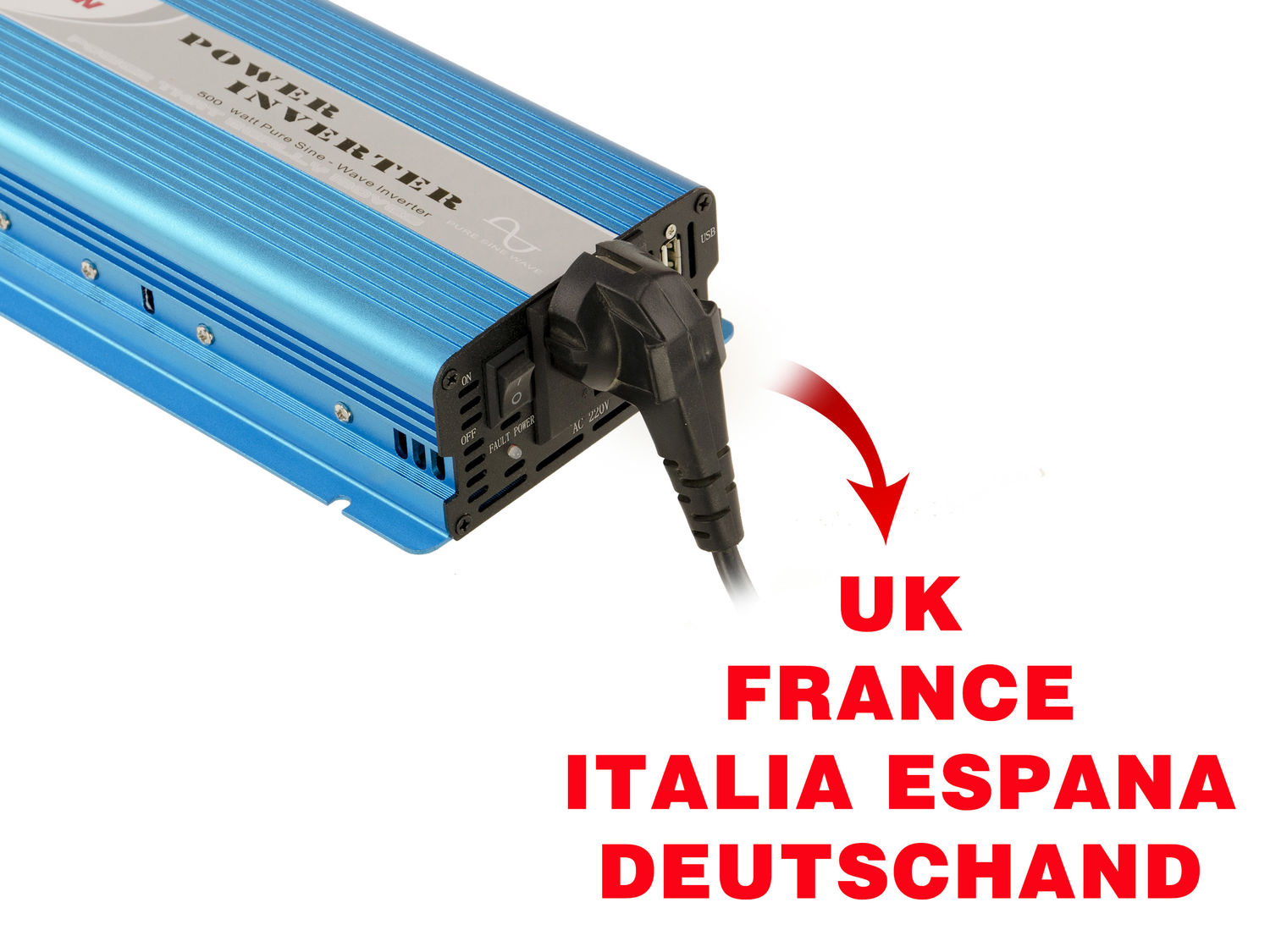 Inverseur de tension 12V vers 220V PUR SINUS - Puissance 500 WATTS Puissance en Crête 1000W PRISE EUROPEE