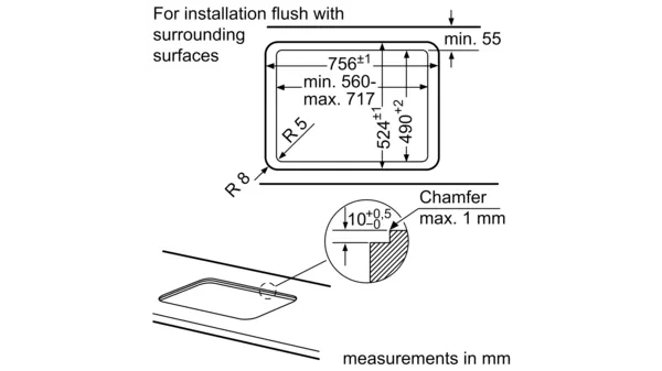 Dimensions d'encastrement 4.5 x 56 x (48 - 49.2)
