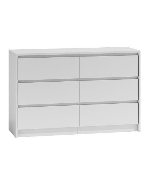 Commode Iris à l'allure épurée et naturelle s'accordera parfaitement dans votre salon ou votre chambre. Elle offre une belle capacité de rangement grâce à ses six tiroirs. C'est une solution parfaite pour les personnes qui cherchent le mobilier de rangement à la fois contemporaine, simple et élégant, POINTS FORTS : 6 tiroirs, Faces de tiroirs modernes sans poignées, Bords PVC, Fonctionnelle et moderne, Grande capacité de rangement, Finition: blanc mat, CARACTÉRISTIQUES TECHNIQUES : Dimensions : 120x40x75, Dimensions des tiroirs: 51.8x33.3x11.5 cm (LxPxH), Structure panneaux de particules mélaminés, Joues du meuble sans cache-vis, Assemblage aisé, Fabriqué en Europe, Entretien facile, Photos des articles le plus fidèle possible, mais restant non contractuelles, les nuances de couleur et le rendu des matières présentés à l'écran pouvant être différents de la réalité