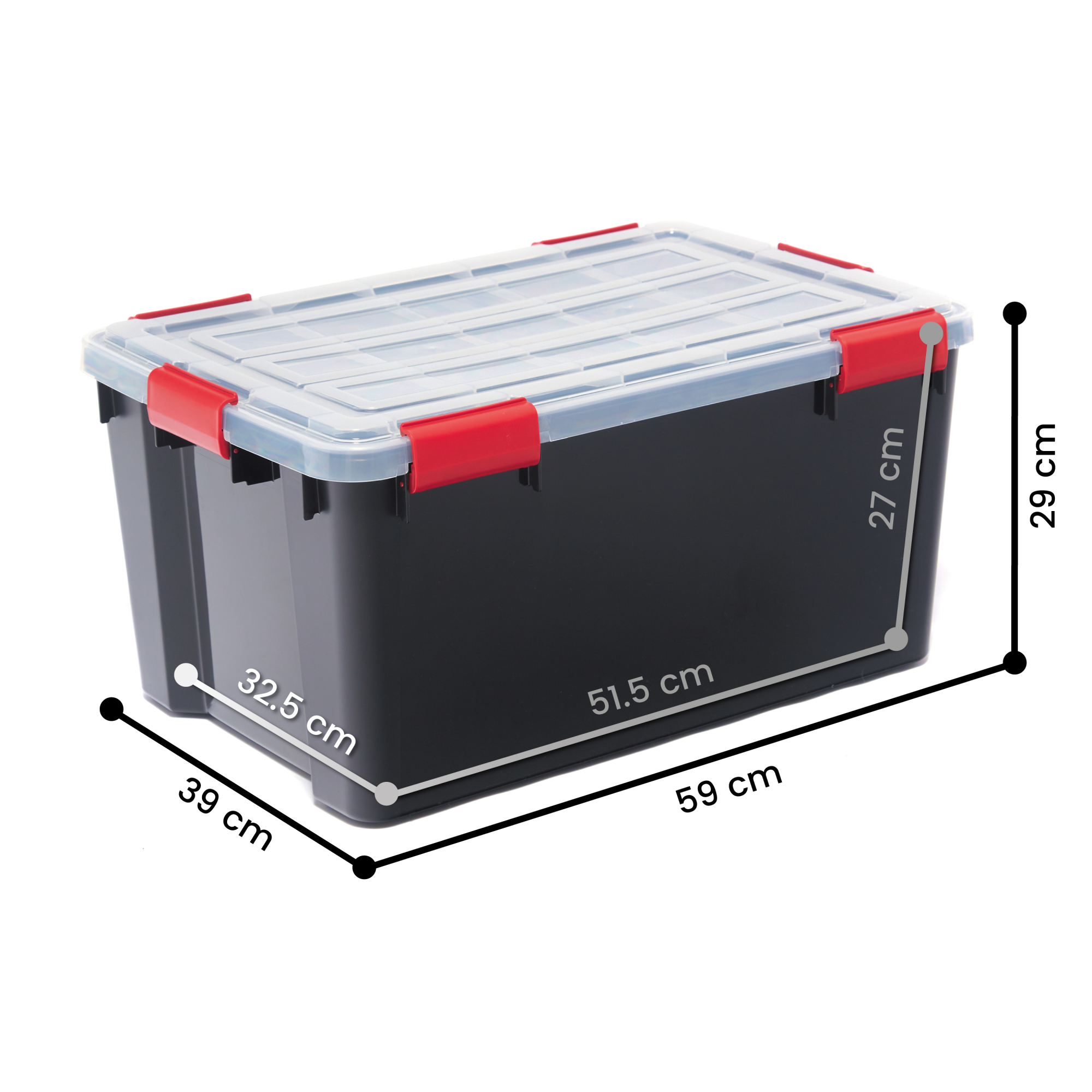 Iris Ohyama, Boite de Rangement Hermétique, 50L, Lot de 4, Noir, DDAT-L