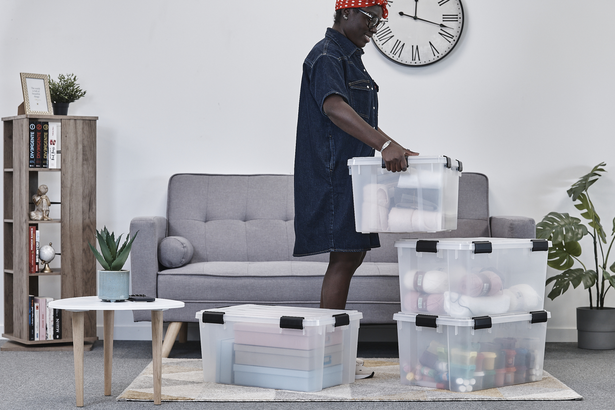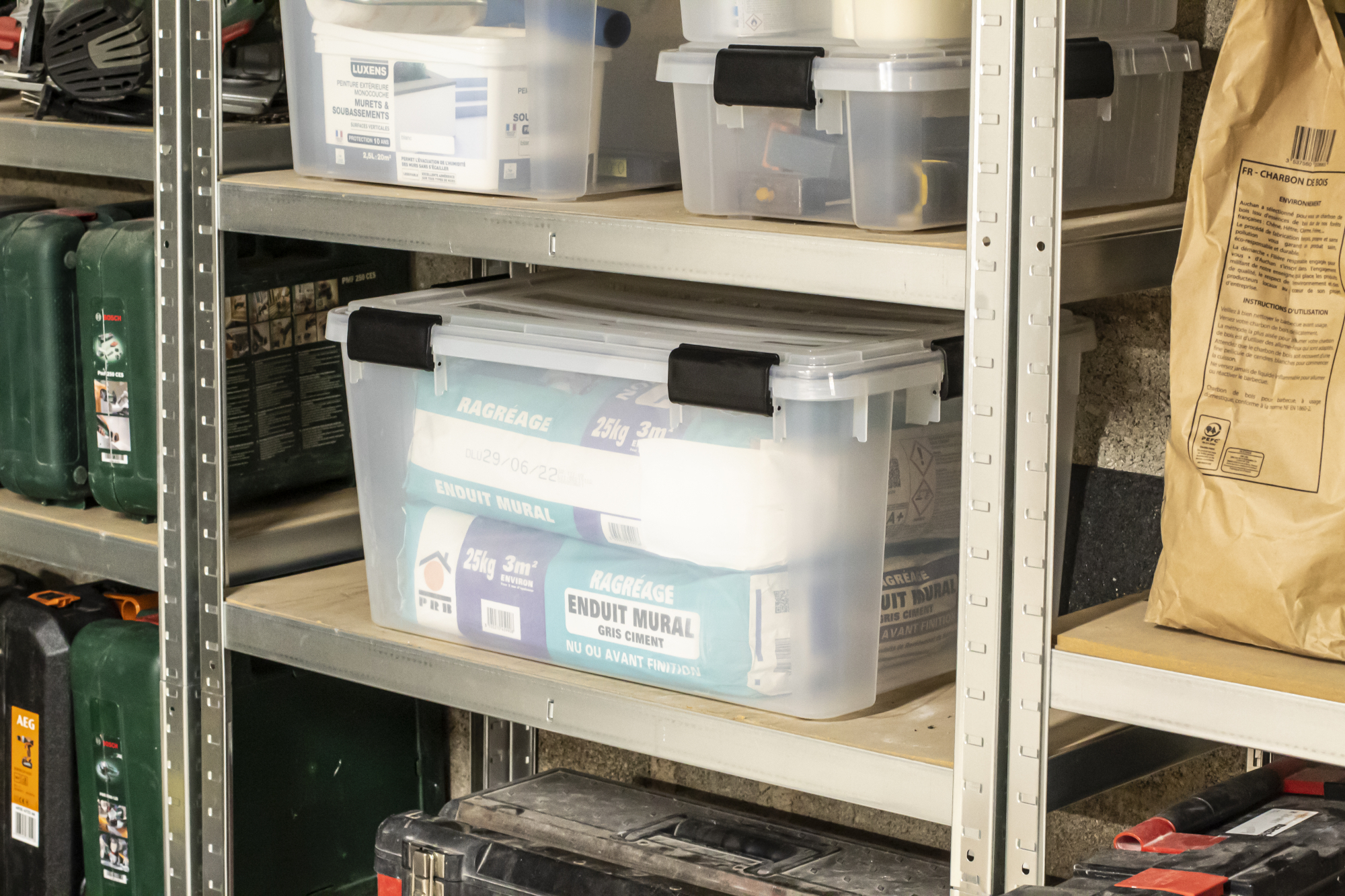 DIMENSIONS DE LA BOITE DE RANGEMENT : Externes : L39 x P59 x H29 cm| Internes: L32.5 x P48 x H27 cm|Ce produit est une fabrication 100% européenne (usine située à Lieusaint, France). CAPACITÃ? DE LA BOITE DE RANGEMENT : Le volume d'une boîte est de 50L. De plus, le volume de cette boite plastique est suffisant pour stocker de nombreux articles, tels que des objets volumineux, des accessoires, des jouets, livres et autres. MATERIAU DE LA CAISSE DE RANGEMENT : Ce produit est fabriqué en plastique sans BPA (polypropylÃ?ne). Cela garantit une résistance aux chocs et aux coups ainsi qu'un nettoyage simple de la boîte de rangement avec couvercle. HERMÃ?TIQUE & SÃ?CURITÃ? : Le couvercle a été doté d'un joint étanche pour protéger les effets de l'humidité et de la poussiÃ?re dans toutes piÃ?ces humides. Aussi, il a été muni de clips pour un usage quotidien facile et en toute sécurité pour tous. DESIGN DE LA CAISSE DE RANGEMENT : La forme de cette boite de rangement a été pensée pour s'adapter à différents styles, gouts donc aller dans les grandes piÃ?ces, moyennes ou petites. De plus, son couvercle solide et renforcé permet d'empilable différentes boîtes de même taille, pour un gain de place. CONTENU DE LA LIVRAISON : Lot de 4 boîtes de rangement avec couvercle, clips et fermeture hermétique. Ce produit est livré dans un emballage conforme aux normes.