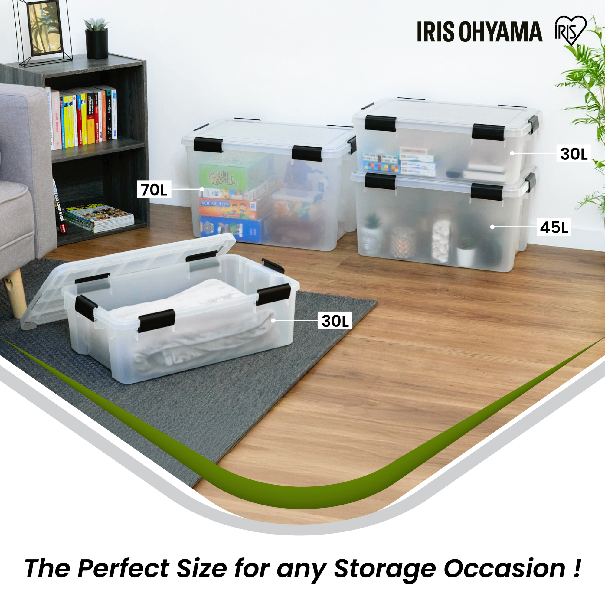 Iris Ohyama, Boite Rangement Hermétique Plastique, 70L, Unité, Transparent, WSB-70