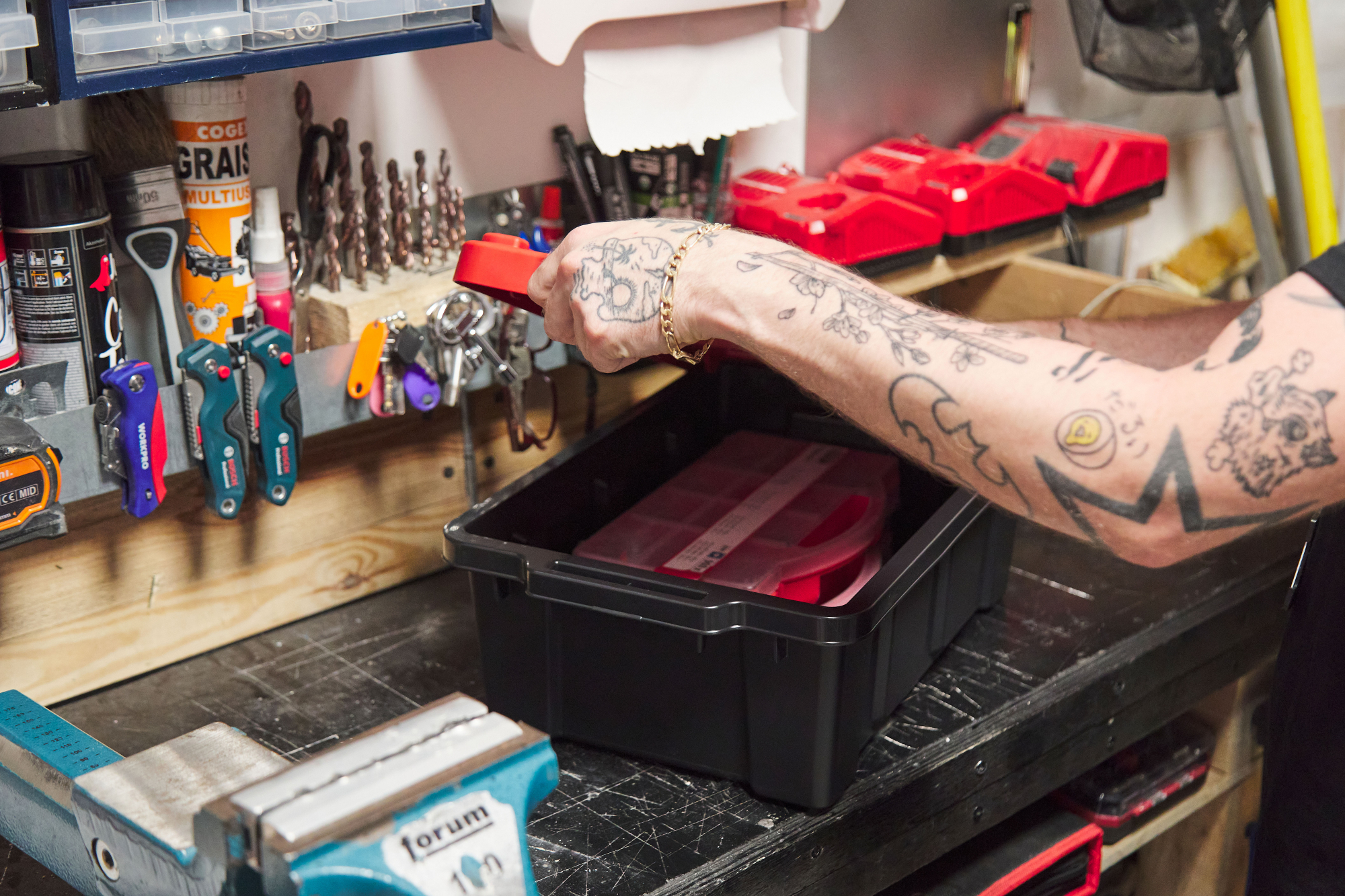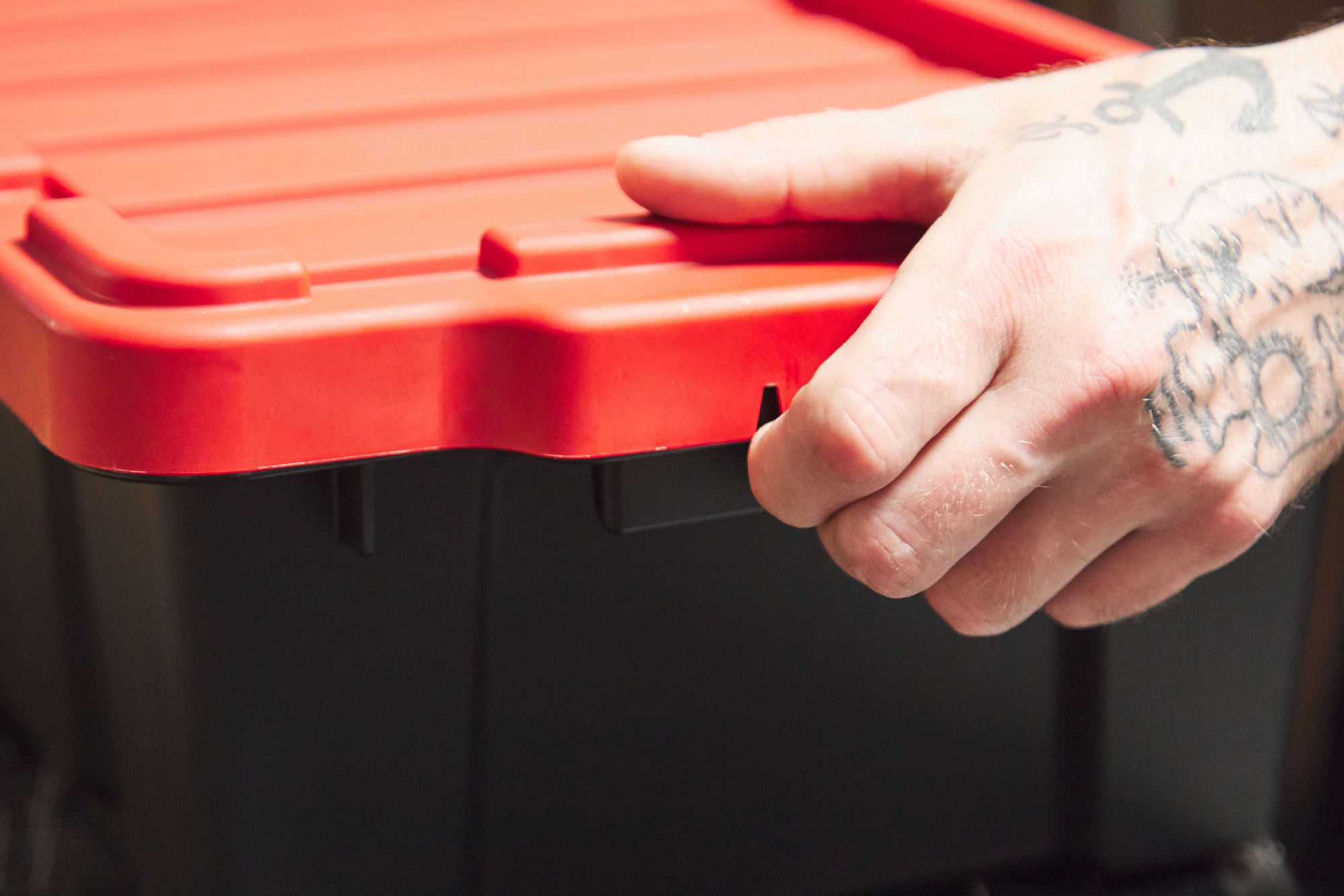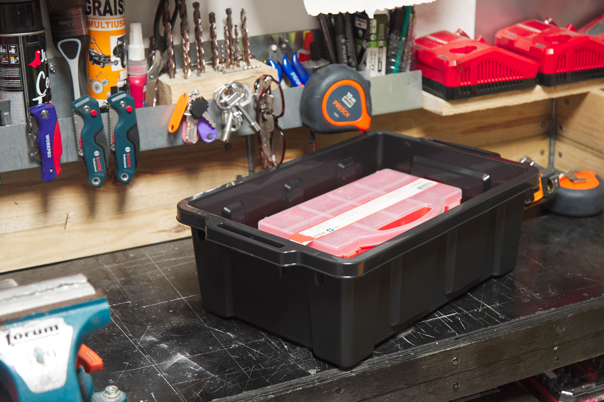 Iris Ohyama, Boite rangement plastique garage de 12.5L, Lot de 6, DDSKT-130, Noir/Rouge, L46.5 x P29.5 x