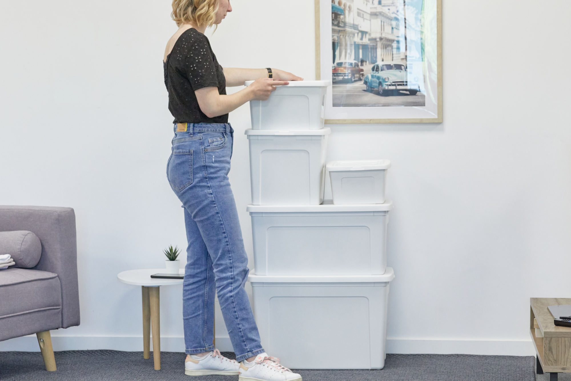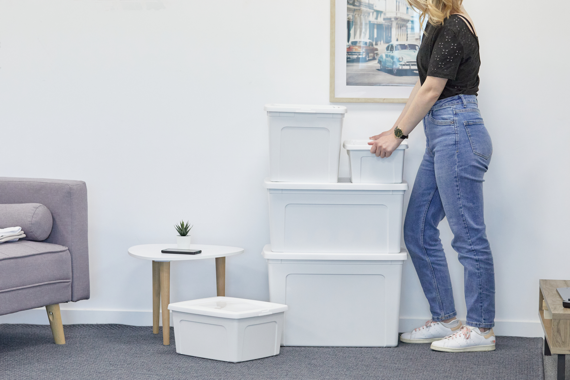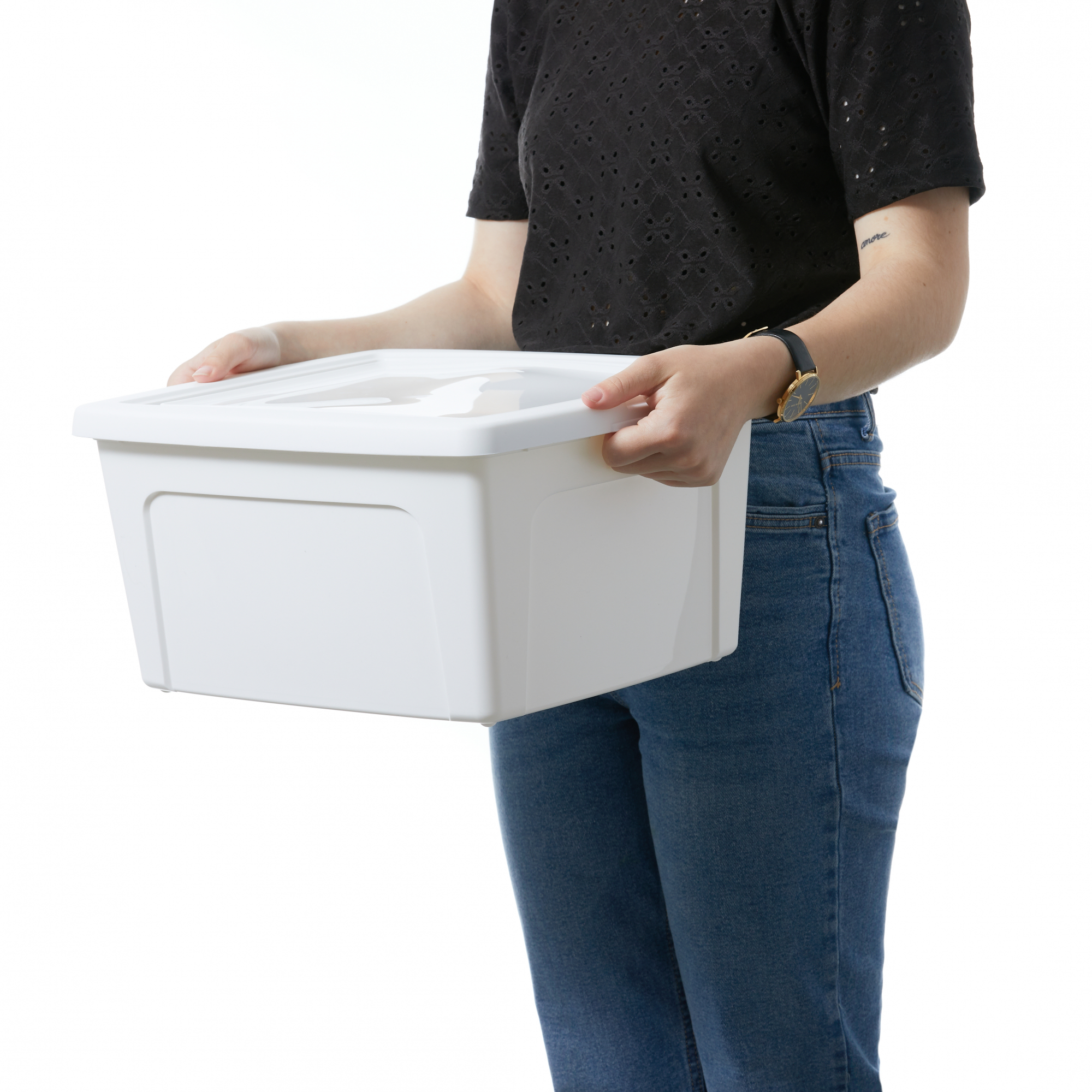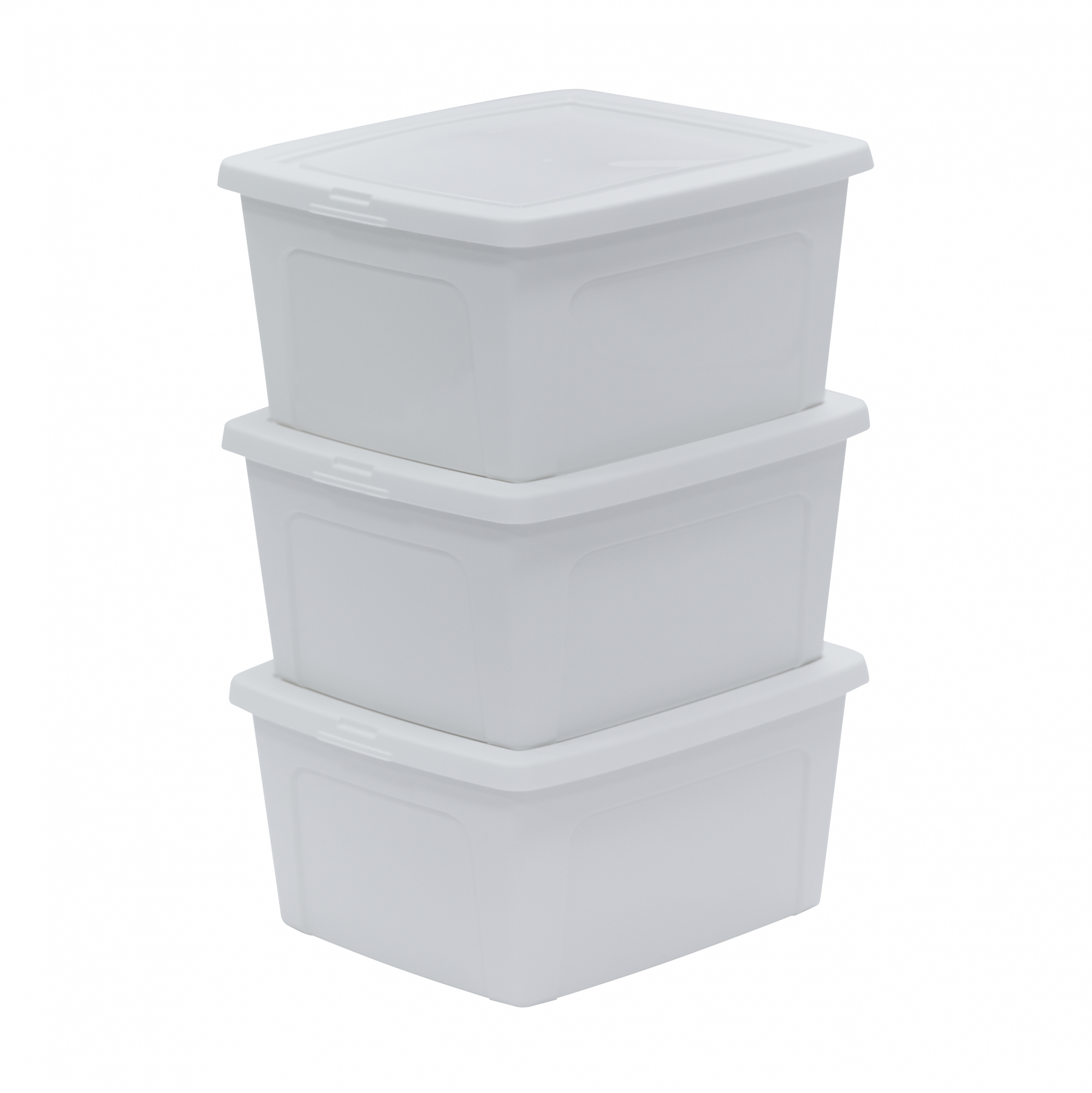 Iris Ohyama, Boîtes de rangement plastique de 3 x 18L, Lot de 3, MCB-18, Blanc, Clips de fermeture- L39.5