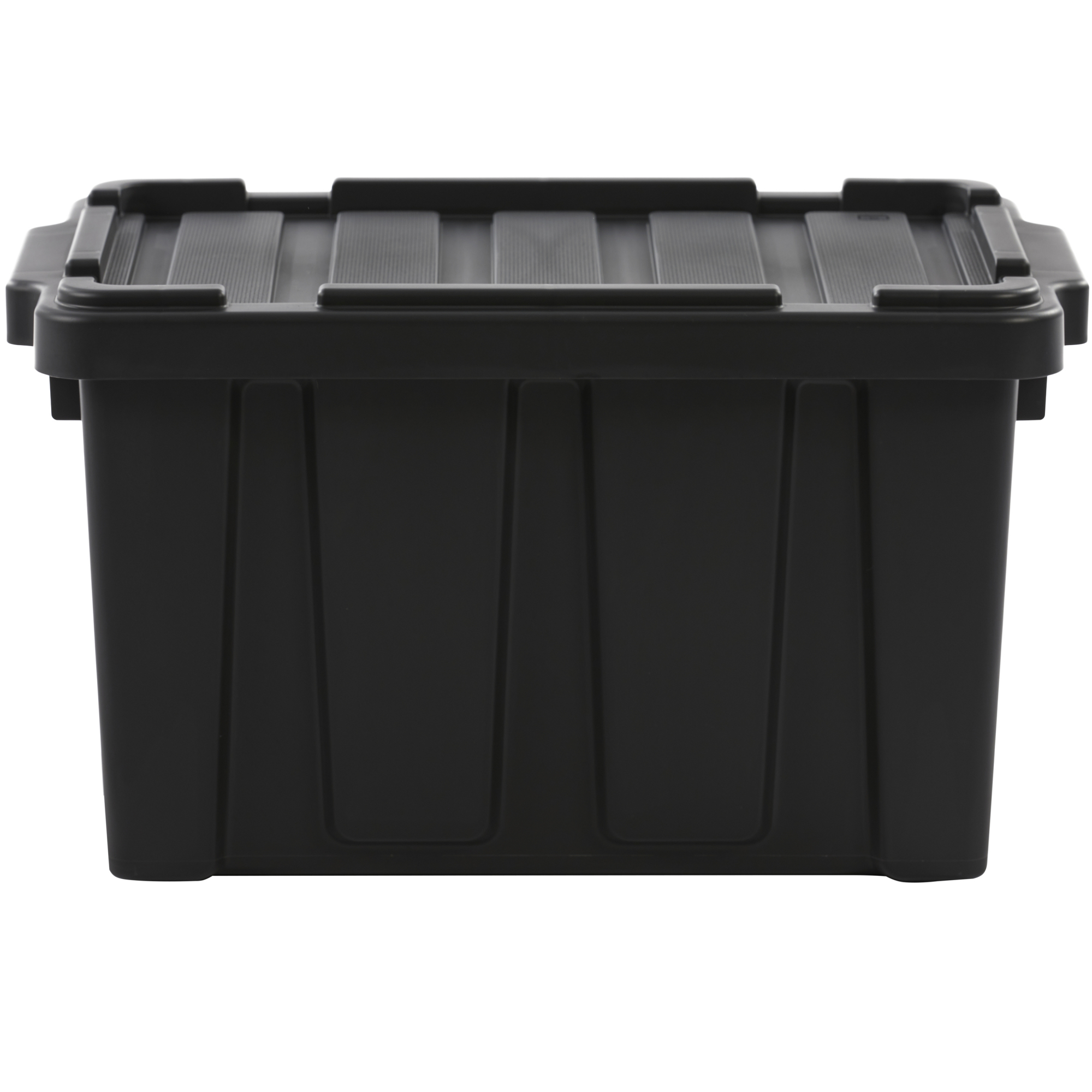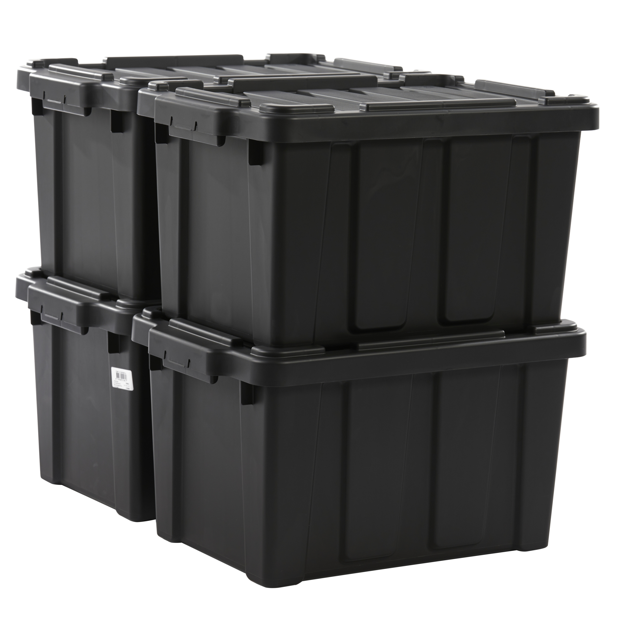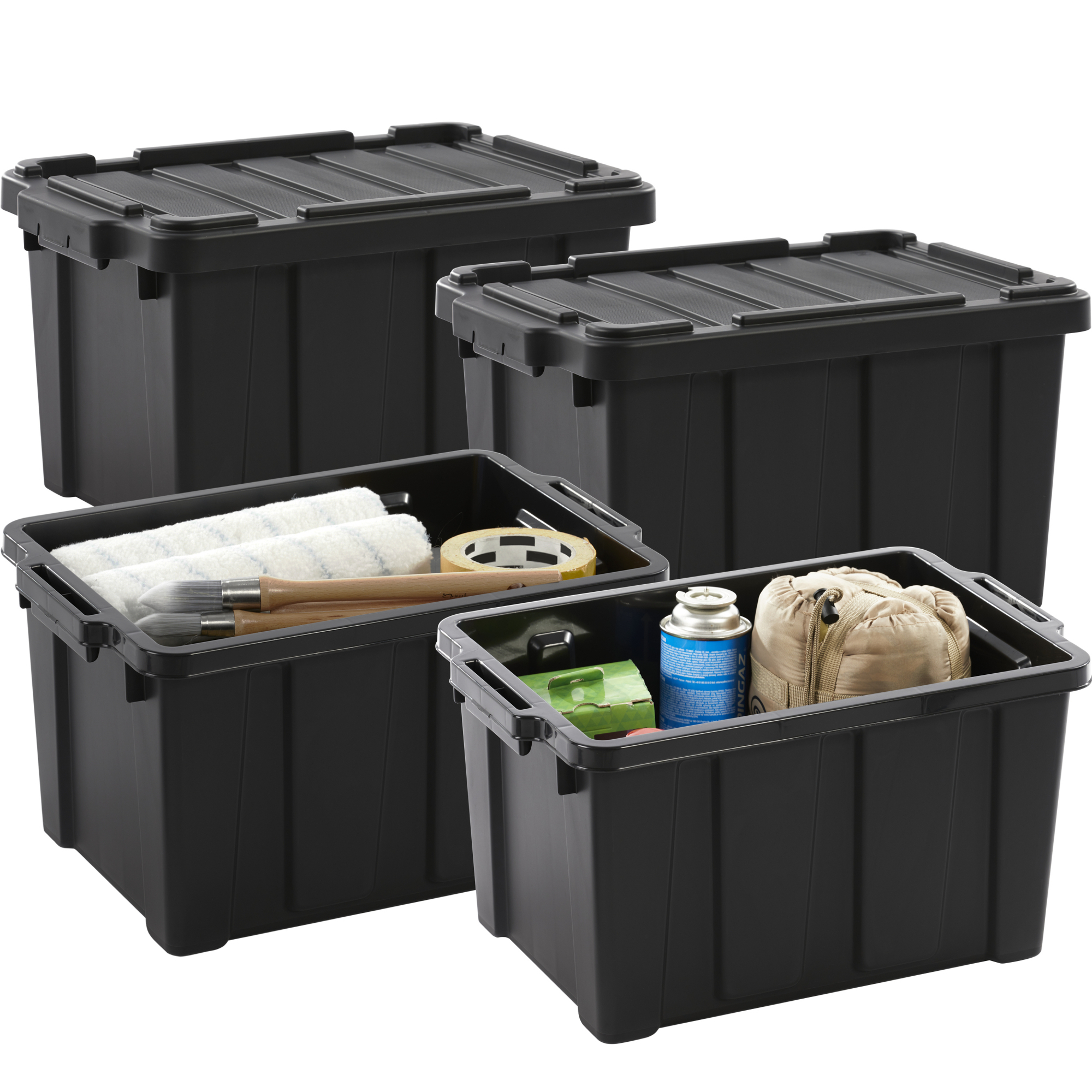 Iris Ohyama, Caisse Rangement avec Couvercle Robuste, 21L, Lot de 4, Noir, DDSKT-210