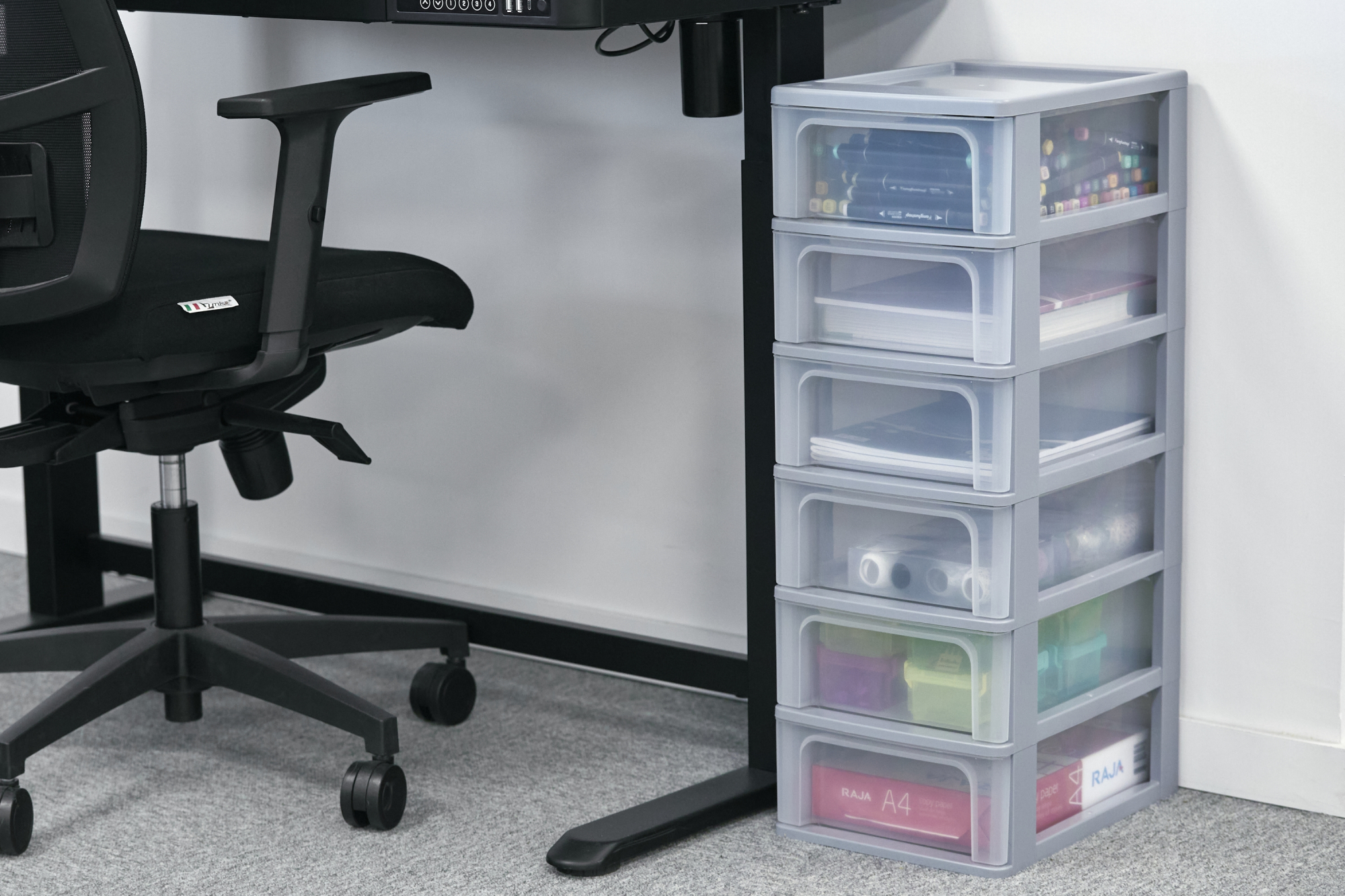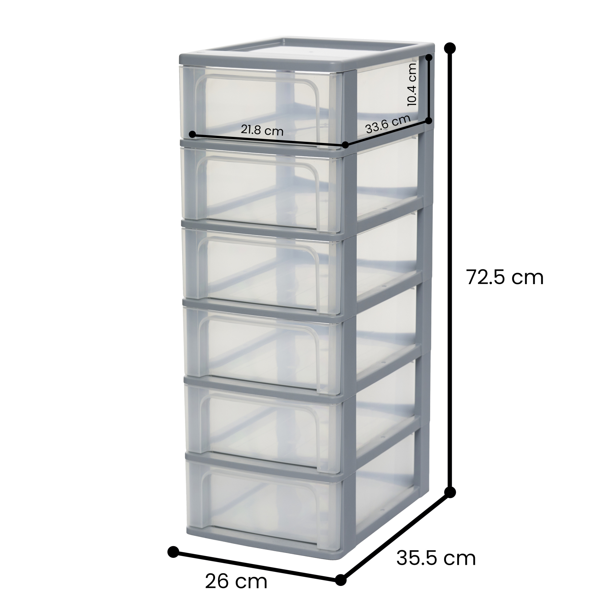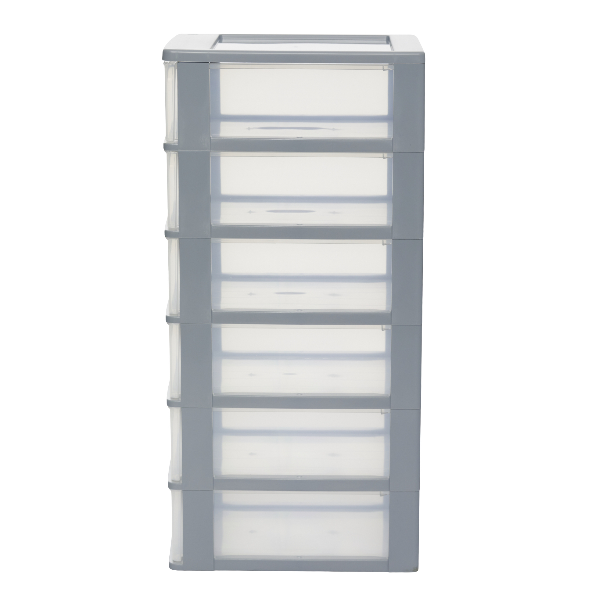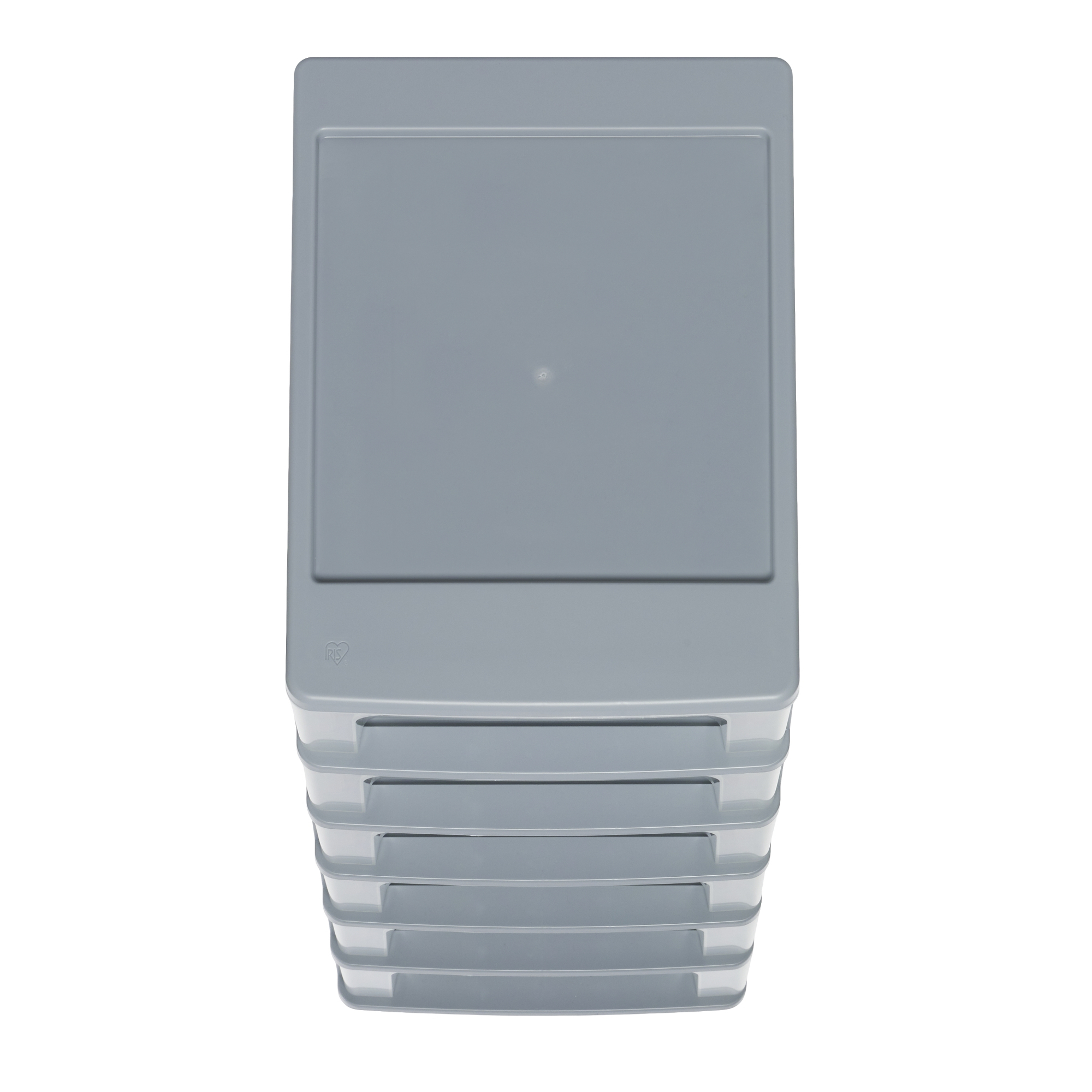 Iris Ohyama, Caisson de rangement plastique A4, 6 Tiroirs Moyens, Gris, OCH-2006