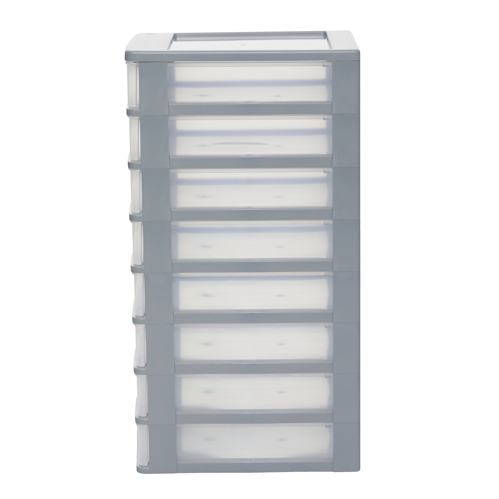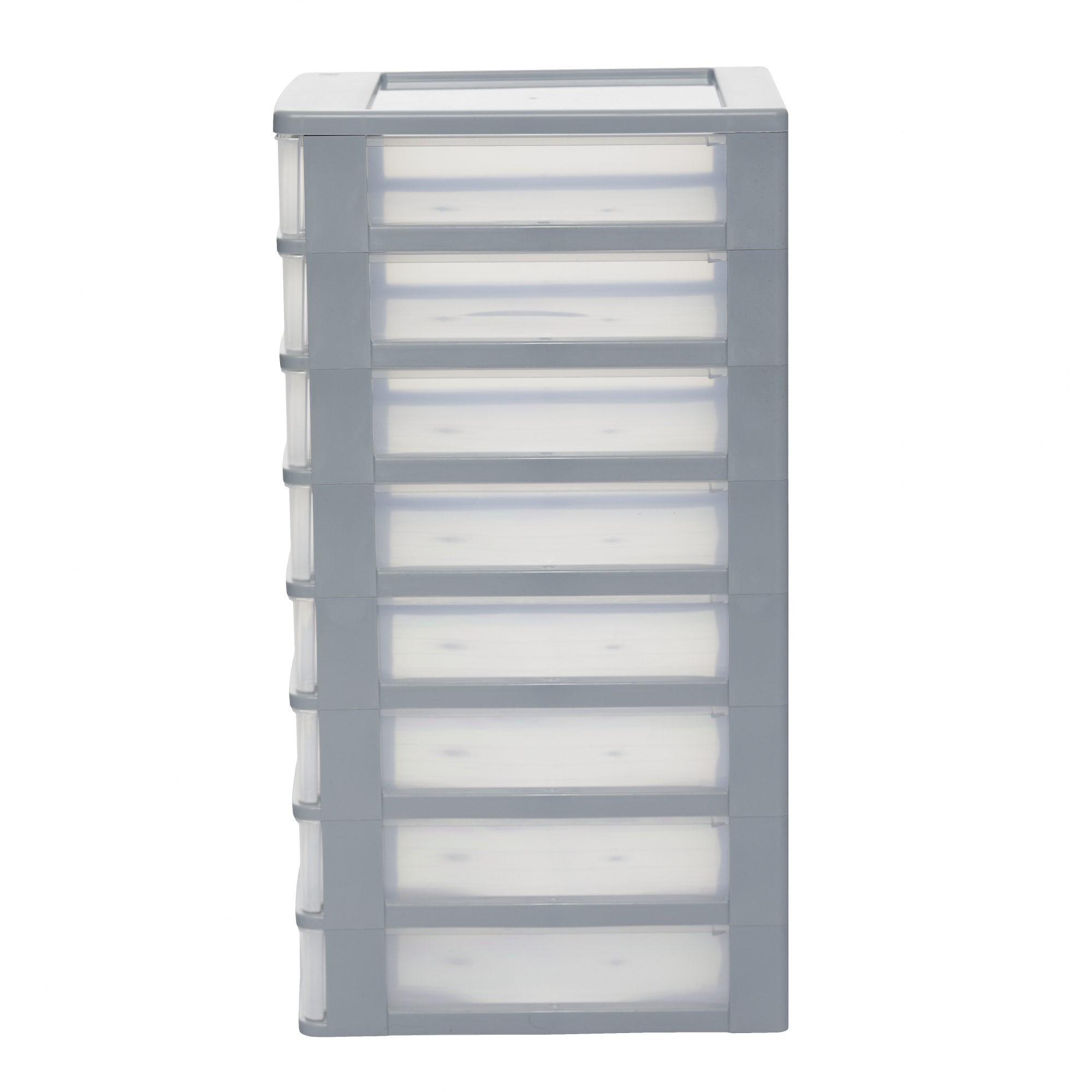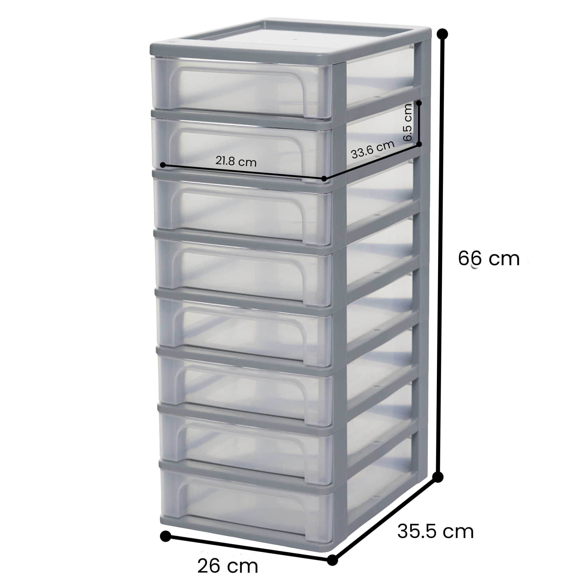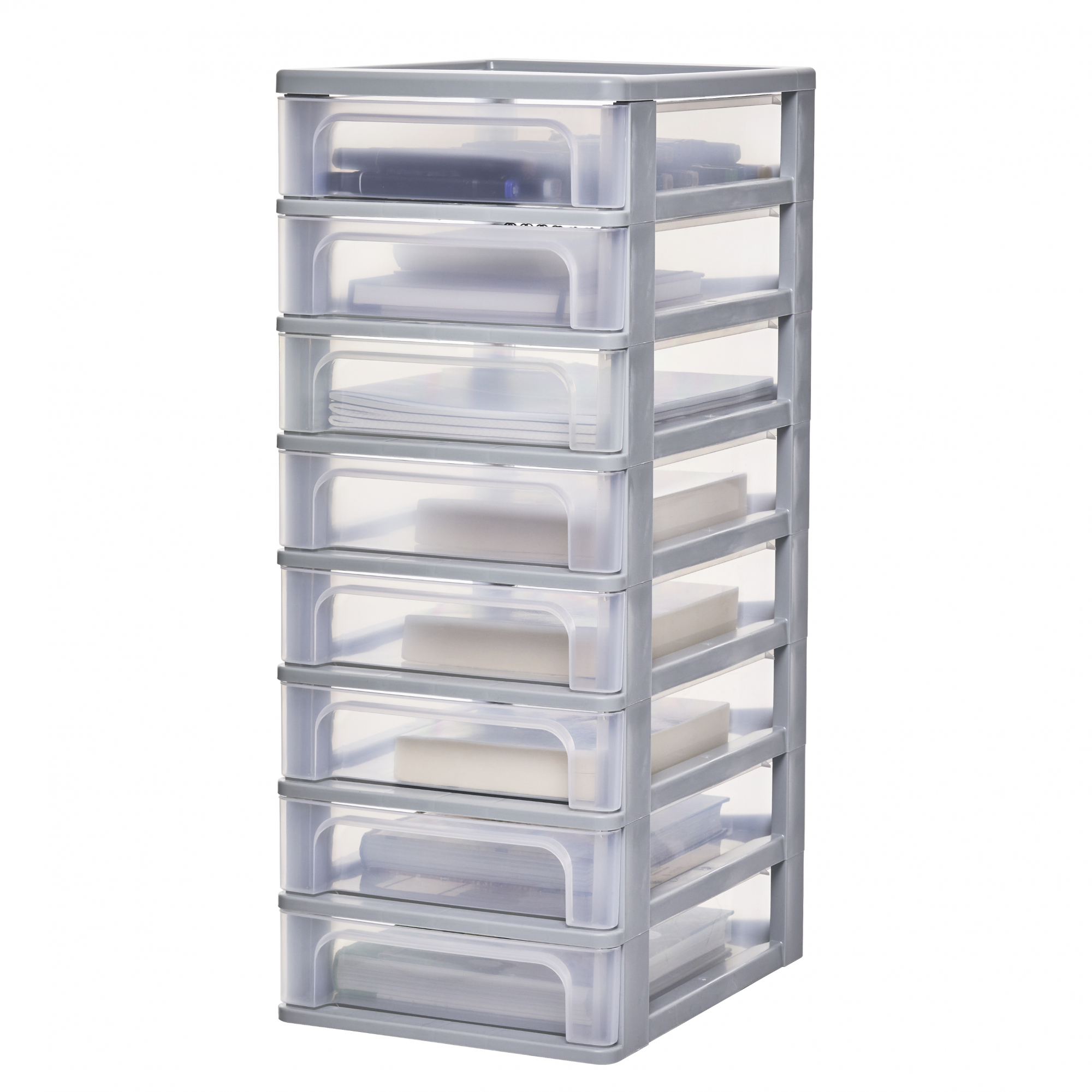 Iris Ohyama, Caisson de rangement plastique A4, 8 Petits Tiroris, Gris, OCH-2080