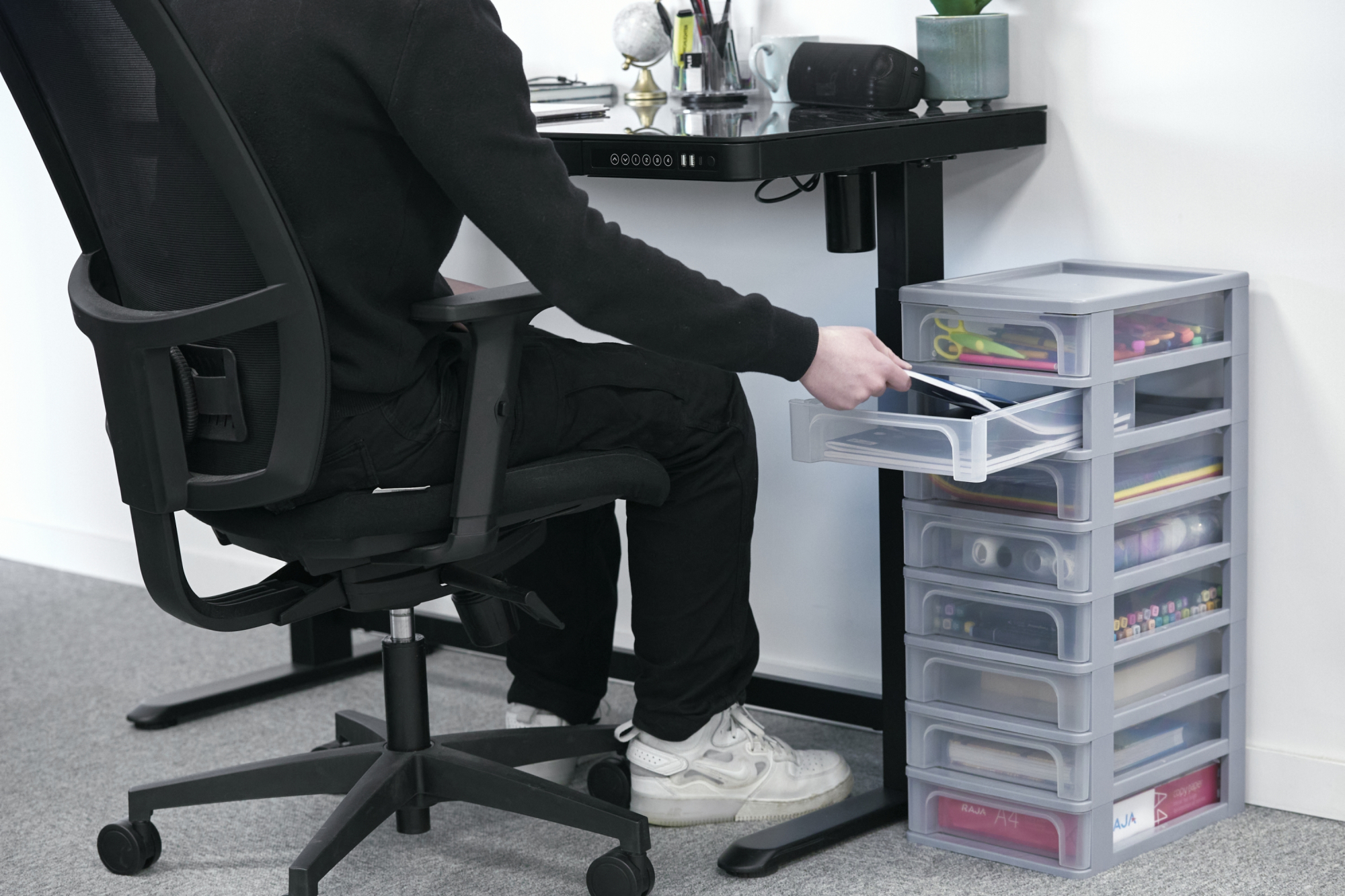 DIMENSIONS DE LA TOUR DE RANGEMENT : Externes : L26 x P35.5 x H66 cm |Internes (tiroirs) : L21.8 x P33.6 x H10.4 cm| Ce produit est une fabrication 100% européenne d'Iris Ohyama provenant de ses usines . CAPACITÃ? DE LA TOUR DE RANGEMENT PLASTIQUE: Le volume de contenance de chaque tiroir de ce produit est de 4L (4x 8). De plus, le poids de ce produit vide est de 3.4kg.De même, la capacité de cette commode de rangement plastique est suffisante pour stocker de nombreux articles comme des classeurs, des accessoires, livres. MATERIAU DE CASIERS DE RANGEMENT : Ce produit est fabriqué en plastique sans BPA (polypropylÃ?ne). Cela garantit une résistance aux chocs et aux coups ainsi qu'un nettoyage simple de la boîte de rangement avec couvercle. POIGNÃ?E INTÃ?GRÃ?E ERGONOMIQUE SOUS LES TIROIRS : Pour facilité l'usage quotidien de ce produit, il a été doté des poignées intégrées. Aussi, ces tiroirs avec une grande capacité de stockage vous permettra de ranger des outils aux formats A4,A5 et A6. DESIGN DE TOUR DE RANGEMENT : Le style comptemporain et classique de ce produit lui confÃ?re un aspect simple grâce à sa forme le rendant approprié dans un bureau , des salles d' étude, un salon. Son cÃ?té Multi- fonction et la conception de tiroirs vous évitera tout souci d'espace, pour le stockage. CONTENU DE LA LIVRAISON : 1 Tour de rangement Sans roues. Ce produit est livré dans un emballage conforme aux normes.