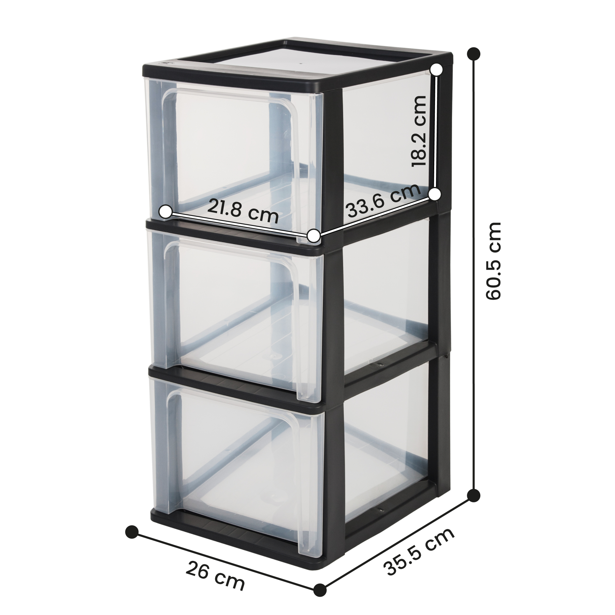 DIMENSIONS DE LA TOUR DE RANGEMENT : Externes : L26 x P35.5 x H60.5 cm|Internes (tiroirs) : L21.8 x P33.6 x H18.2 cm| Ce produit est une fabrication 100% européenne d'Iris Ohyama provenant de ses usines . CAPACITÉ DE LA TOUR DE RANGEMENT PLASTIQUE: Le volume de contenance de chaque tiroir de ce produit est de 13L (3x13L). De plus, le poids de ce produit vide est de 2.1kg.De même, la capacité de cette commode de rangement plastique est suffisante pour stocker de nombreux articles comme des classeurs, des accessoires, livres. MATERIAU : Cette tour de rangement est fabriquée en plastique sans BPA (polypropylène). De même, cette commode est en partie fabriquée à partir de materiaux recyclés et garantit une résistance aux chocs et aux coups ainsi qu'un nettoyage facile de la boîte de rangement avec couvercle. POIGNÉE INTÉGRÉE ERGONOMIQUE SOUS LES TIROIRS : Pour facilité l'usage quotidien de ce produit, il a été doté des poignées intégrées. Aussi, ces tiroirs avec une grande capacité de stockage vous permettra de ranger des outils aux formats A4,A5 et A6. DESIGN DE TOUR DE RANGEMENT : Le style comptemporain et classique de ce produit lui confère un aspect simple grâce à sa forme le rendant approprié dans un bureau , des salles d' étude, un salon. Son côté Multi- fonction et la conception de tiroirs vous évitera tout souci d'espace, pour le stockage. CONTENU DE LA LIVRAISON : 1 Tour de rangement Sans roues. Ce produit est livré dans un emballage conforme aux normes.