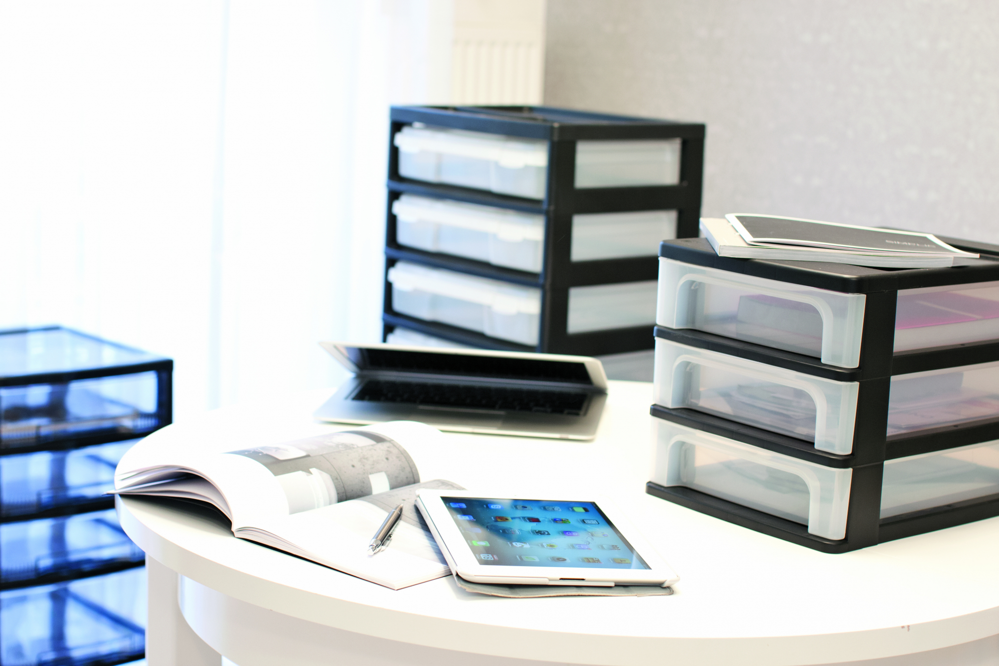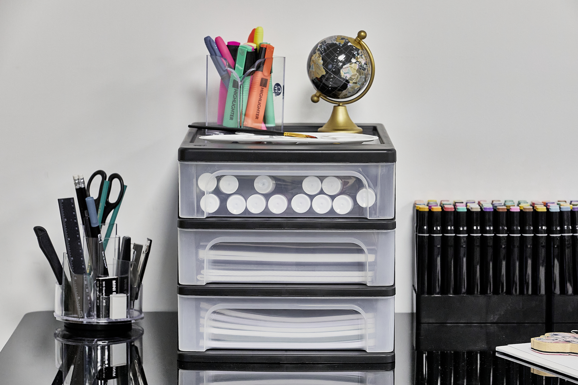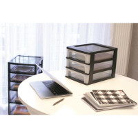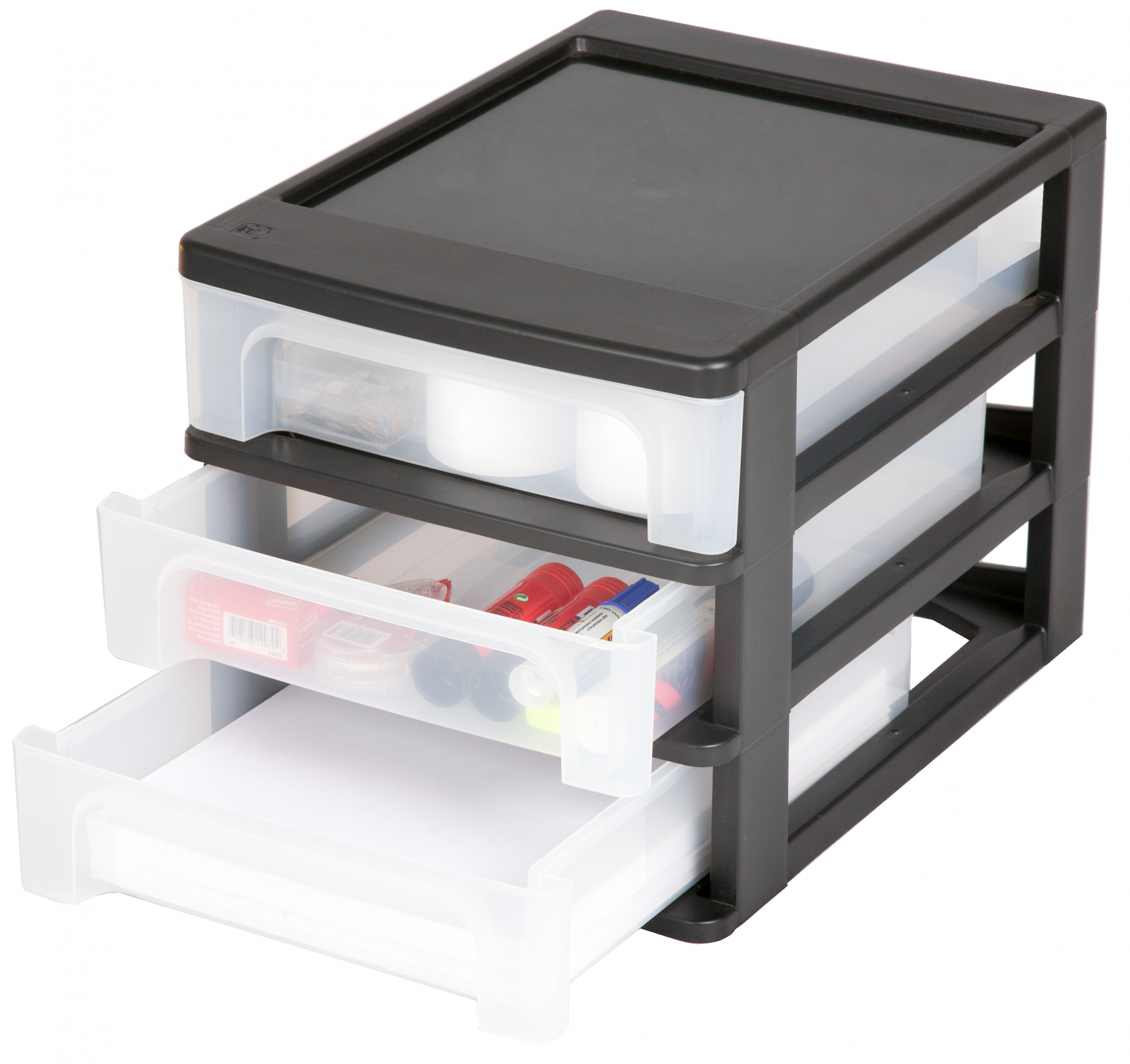 Iris Ohyama, Caisson de rangement plastique recyclé A4, 3 Petits Tiroirs, Noir, OCH-2030