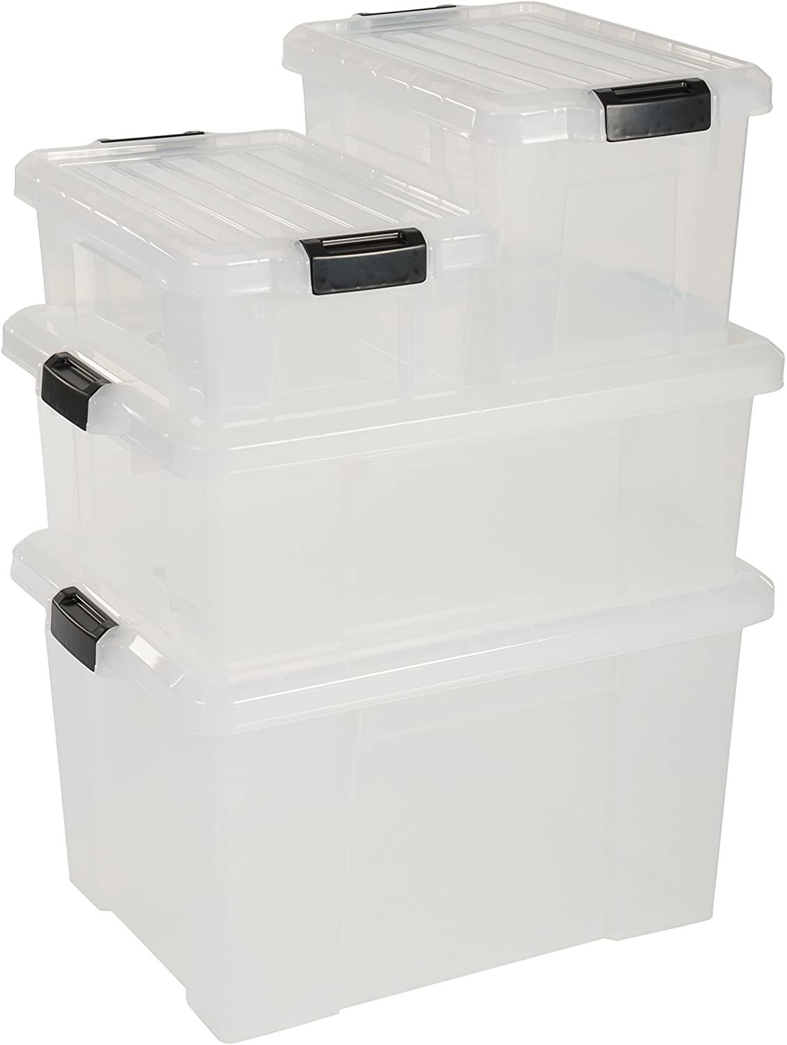 | Libellé | Iris Ohyama, Lot de 3 boîtes de rangement, bricolage, 12.5 L, clips de fermeture, - SK-130 - L46.5 x l29.5 x H16 cm, Transparent |