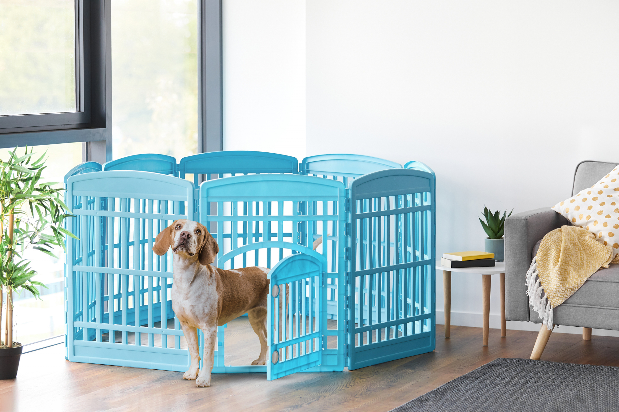 Iris Ohyama, Parc pour Chien Intérieur, Extérieur avec 6 Panneaux & Porte Verrouillable, H60cm, Blanc, po