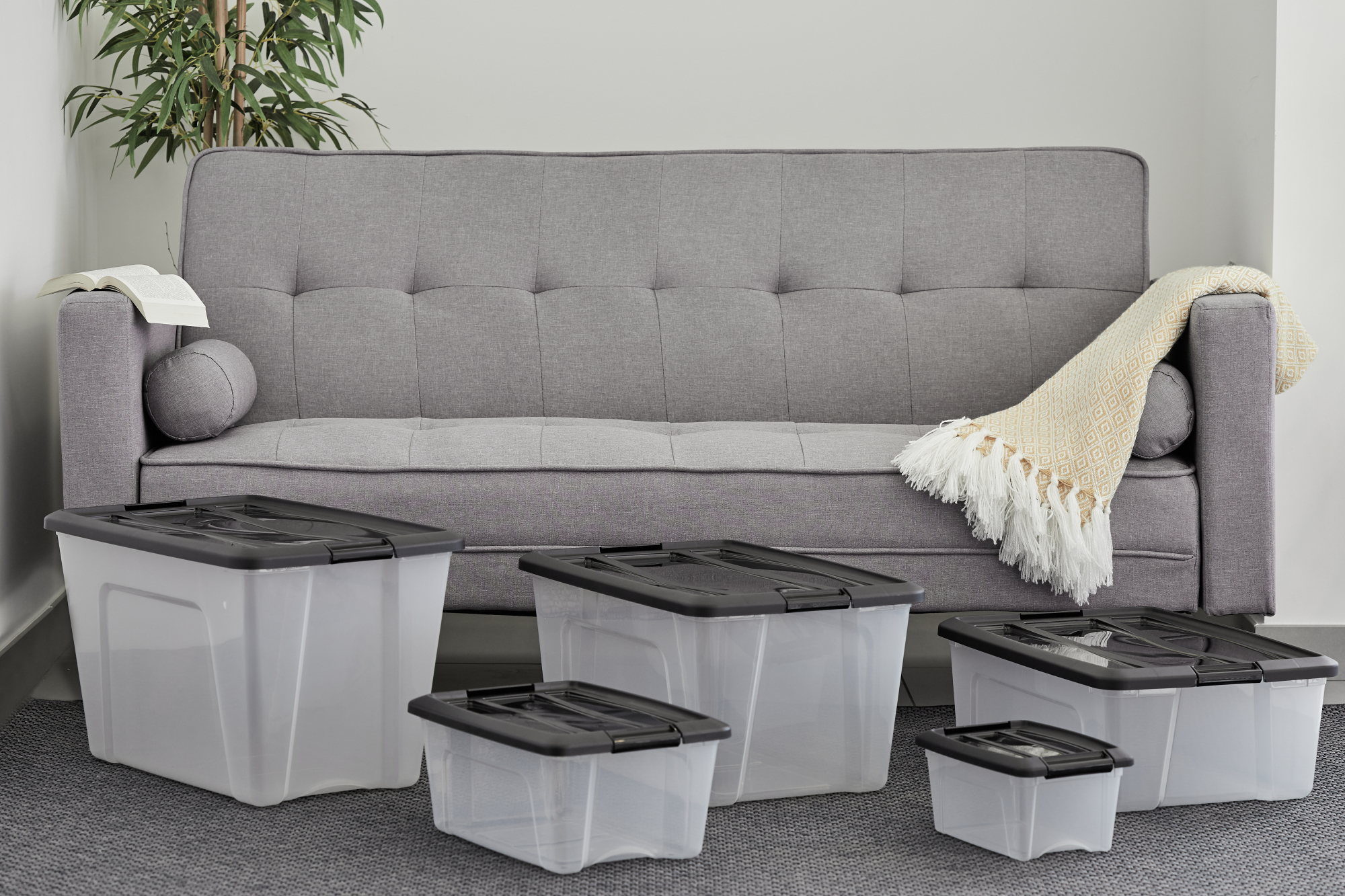 Libellé Iris Ohyama, Petite Boites de Rangement Plastique avec Couvercle, 5L, Lot de 6, Noir, NTB-5