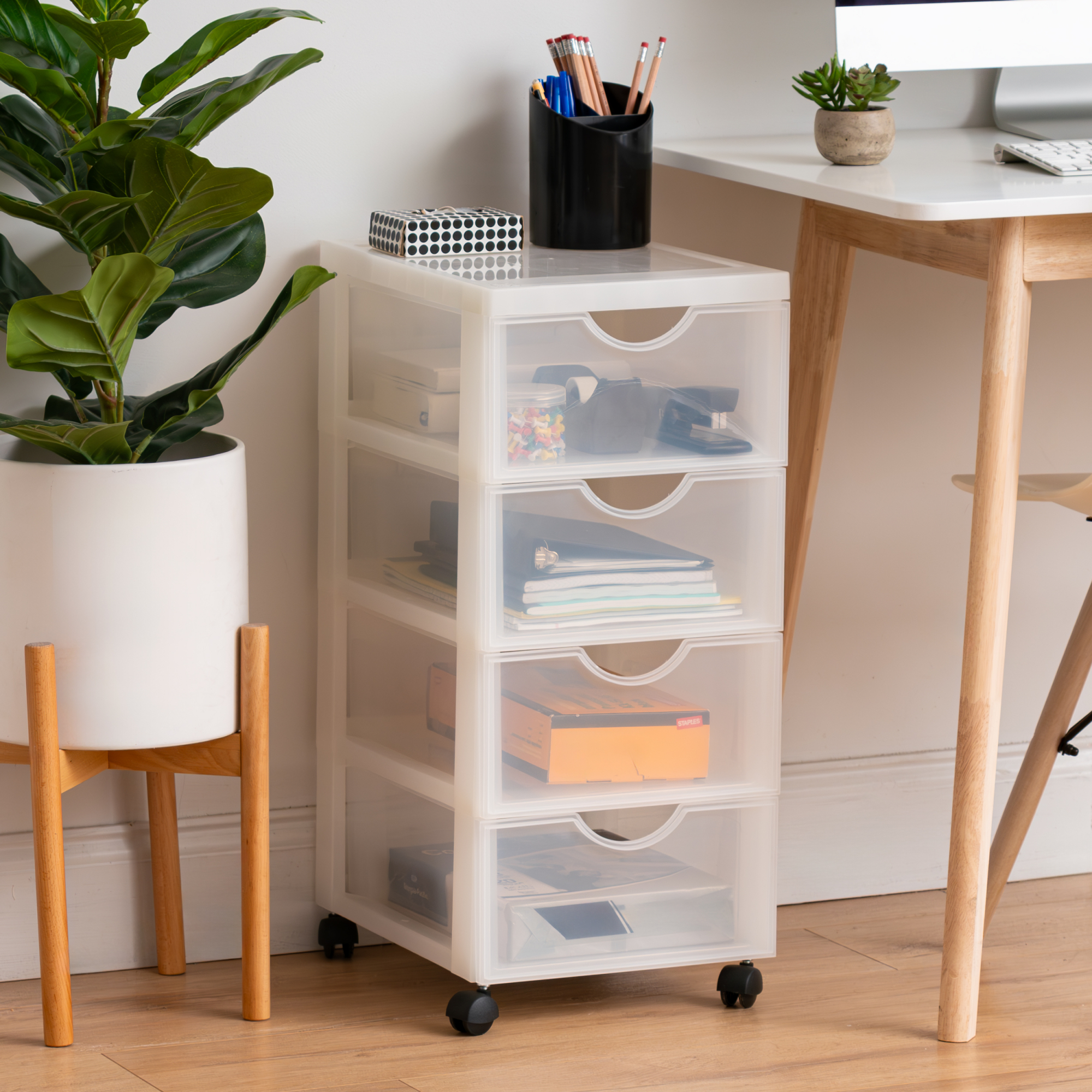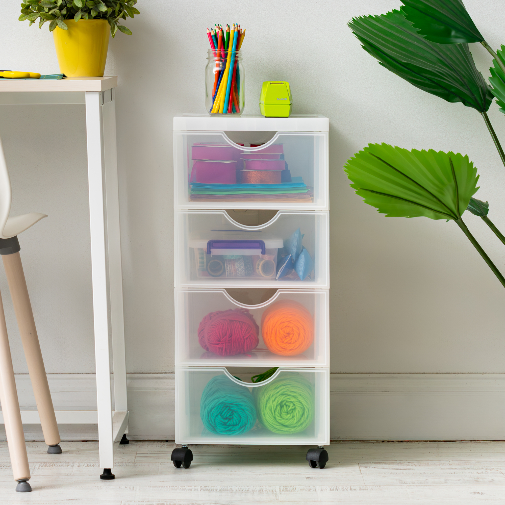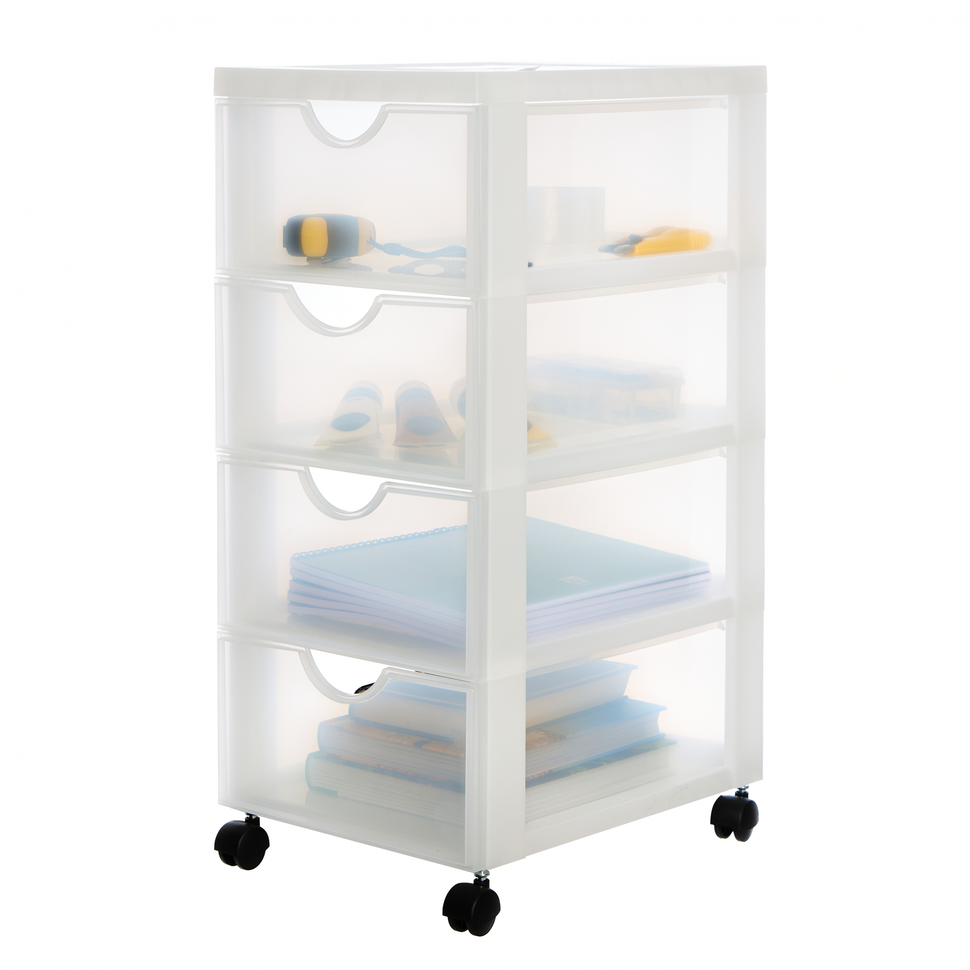 Iris Ohyama, Tour de rangement à Roulettes en Plastique, 4 Tiroirs Moyens, Blanc, DDDC-004