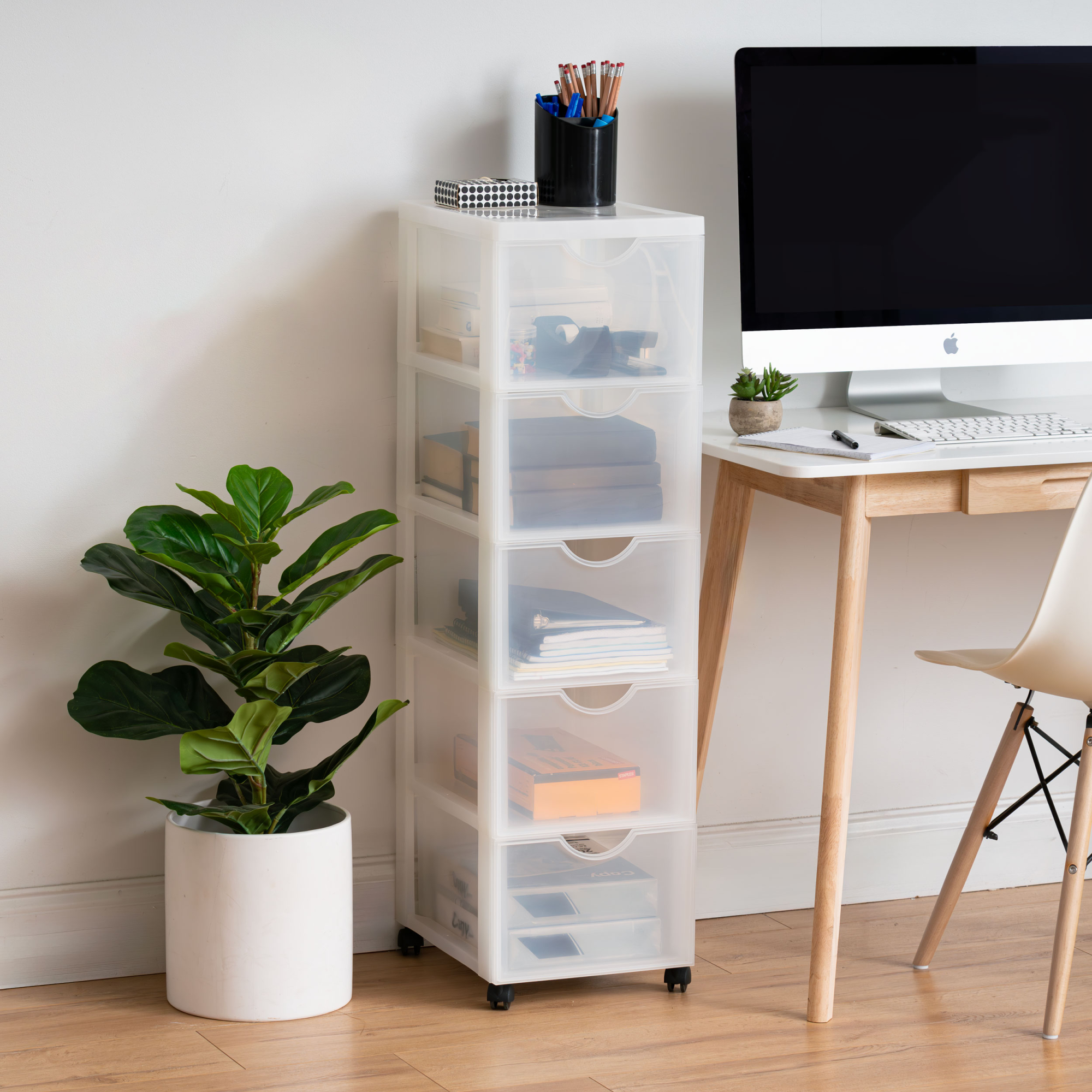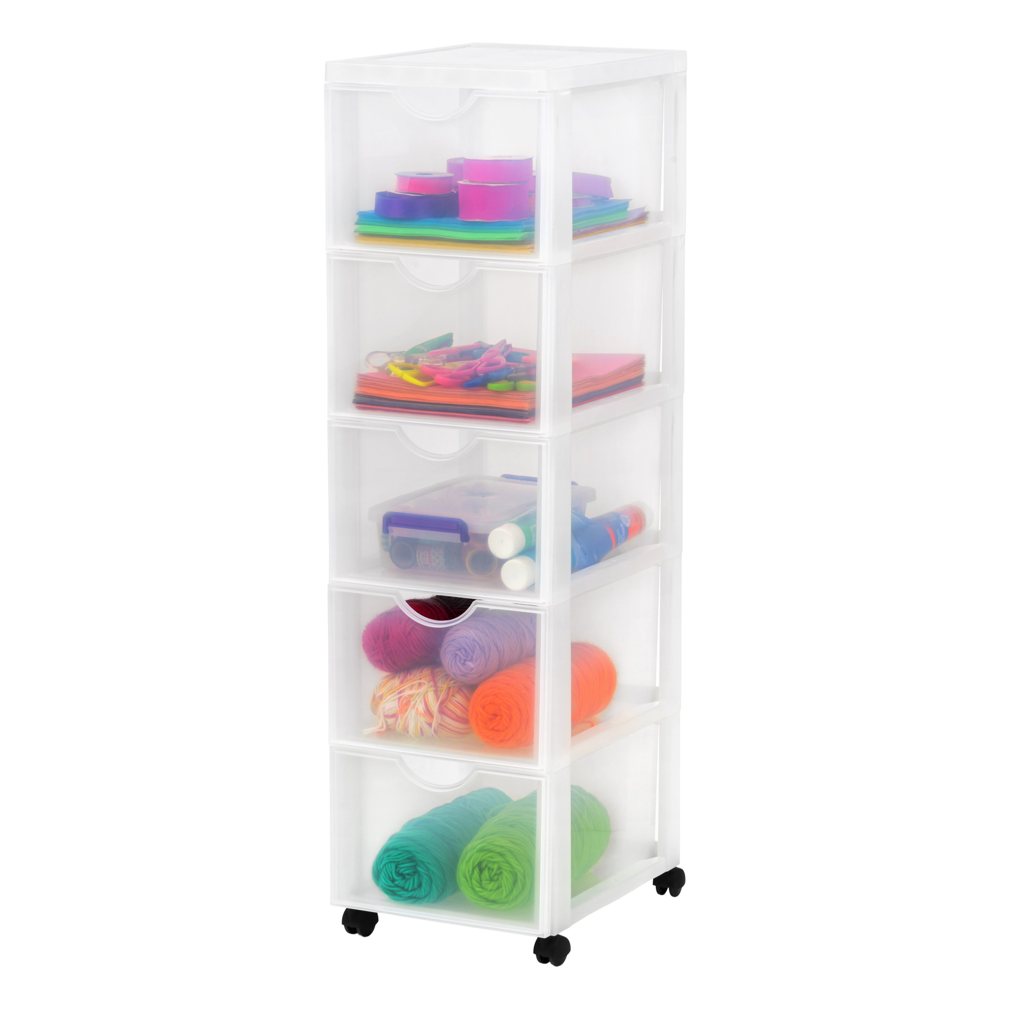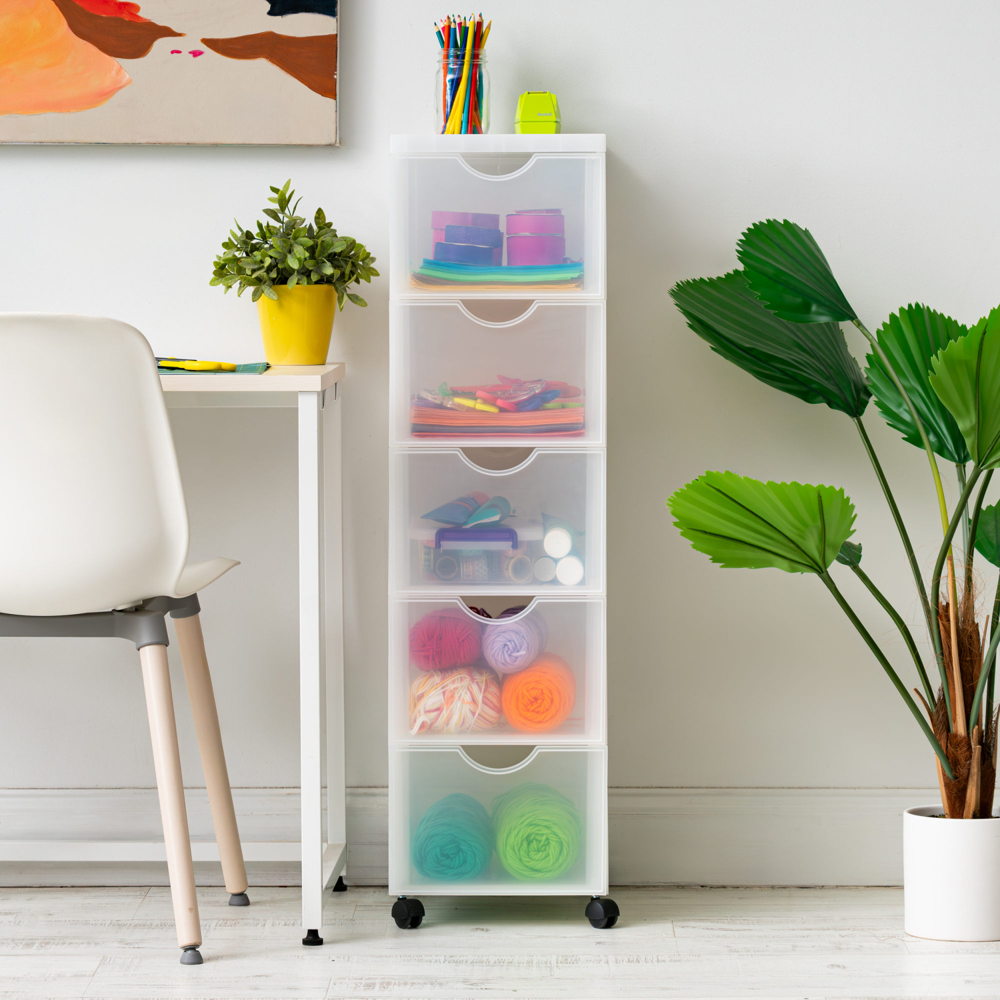 Iris Ohyama, Tour de rangement à Roulettes en Plastique, 5 Grands Tiroirs, Blanc, DDDC-305