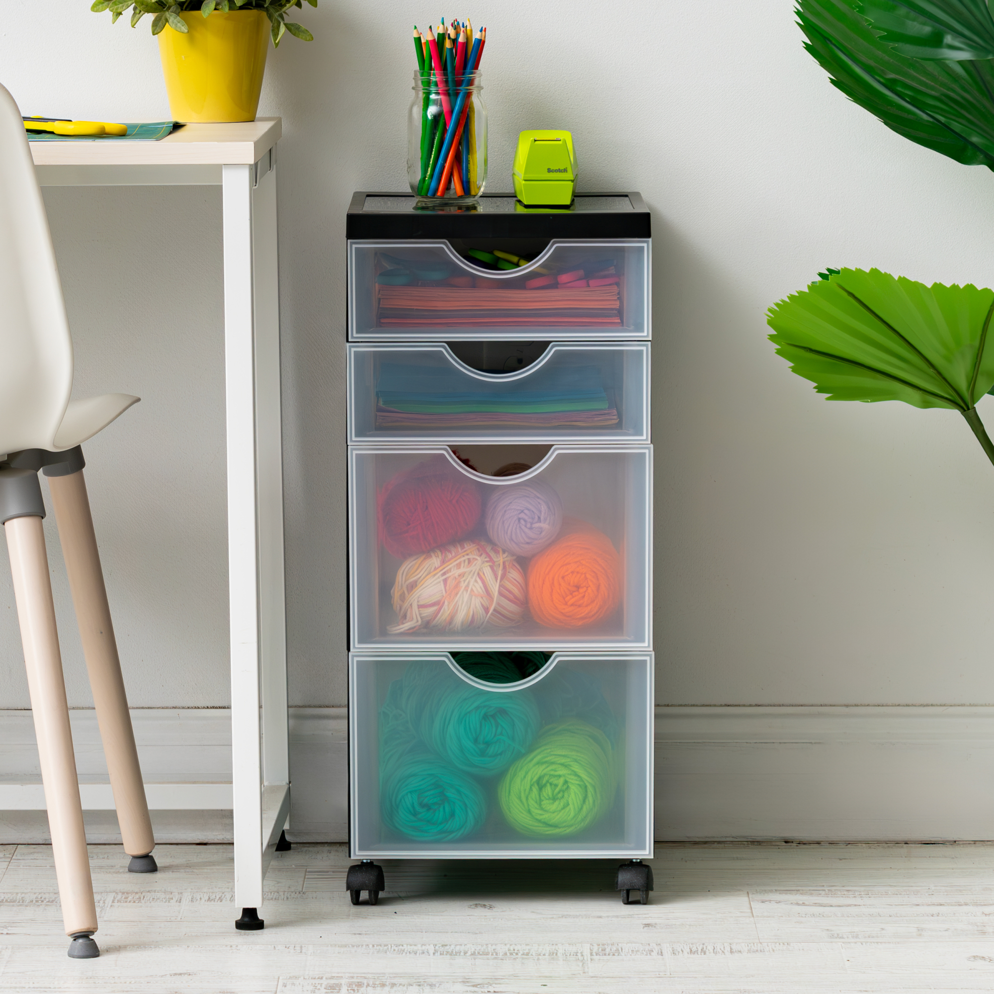 Iris Ohyama, Tour de rangement, Organisateur plastique, 4 tiroirs mix, Noir, DDDC-322