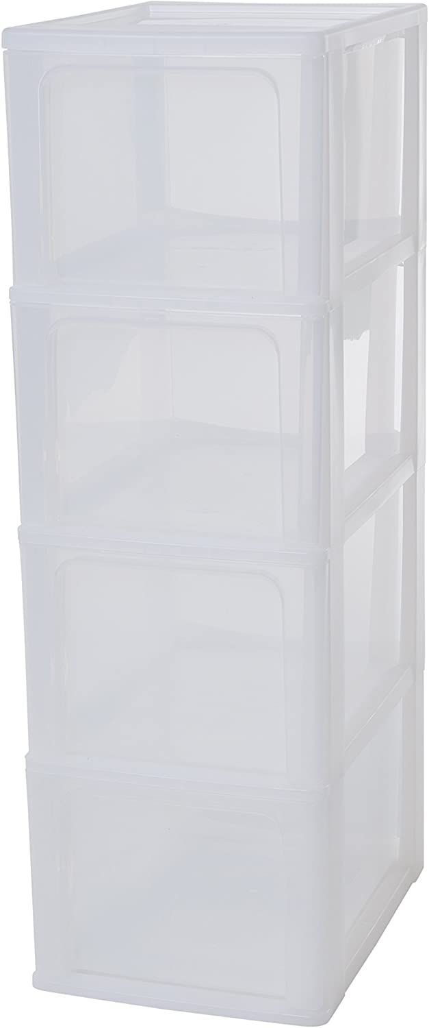 Iris Ohyama, Tour de Rangement Plastique, 4 Grands Tiroirs, Blanc Givré, Ouverture Facile, Format A4, A5