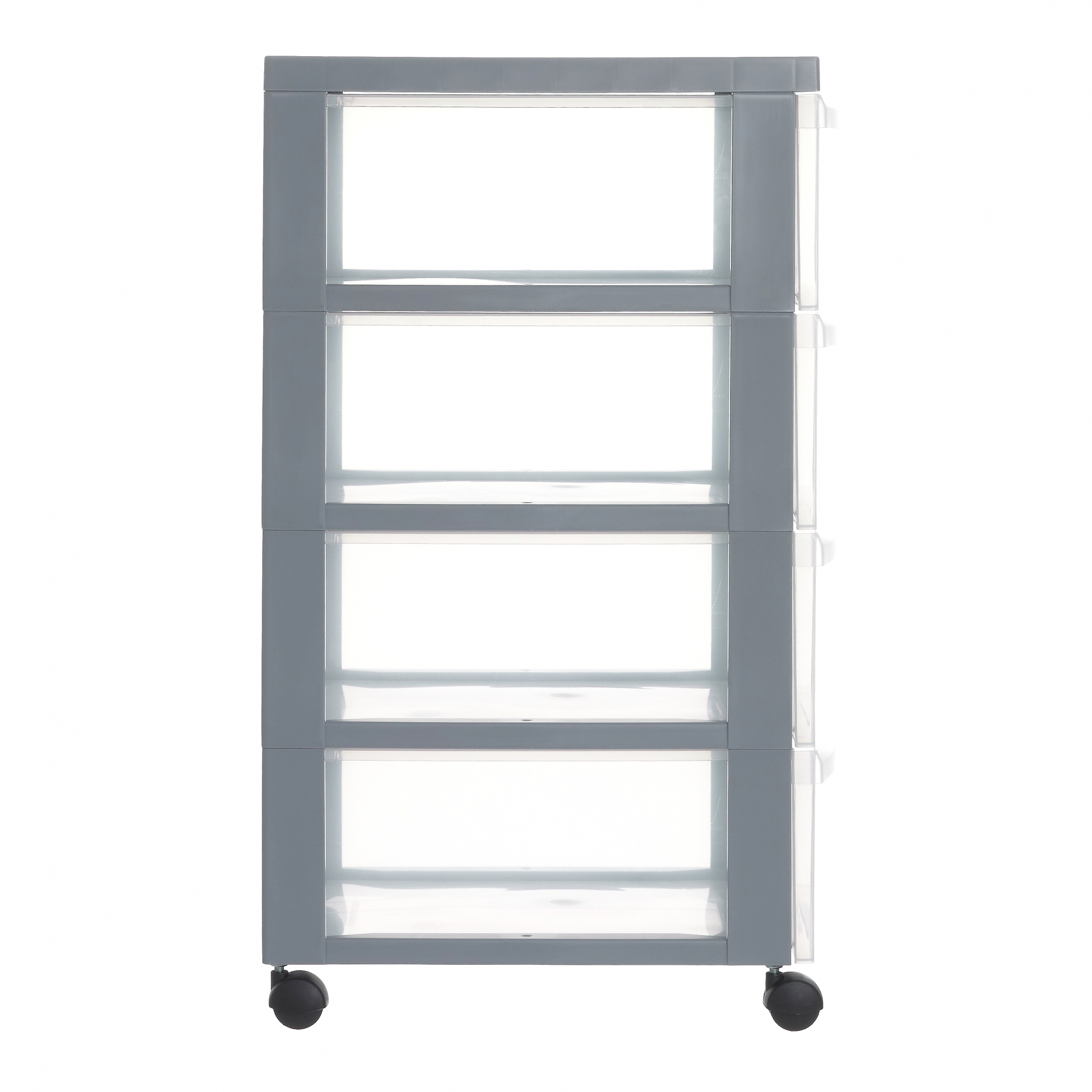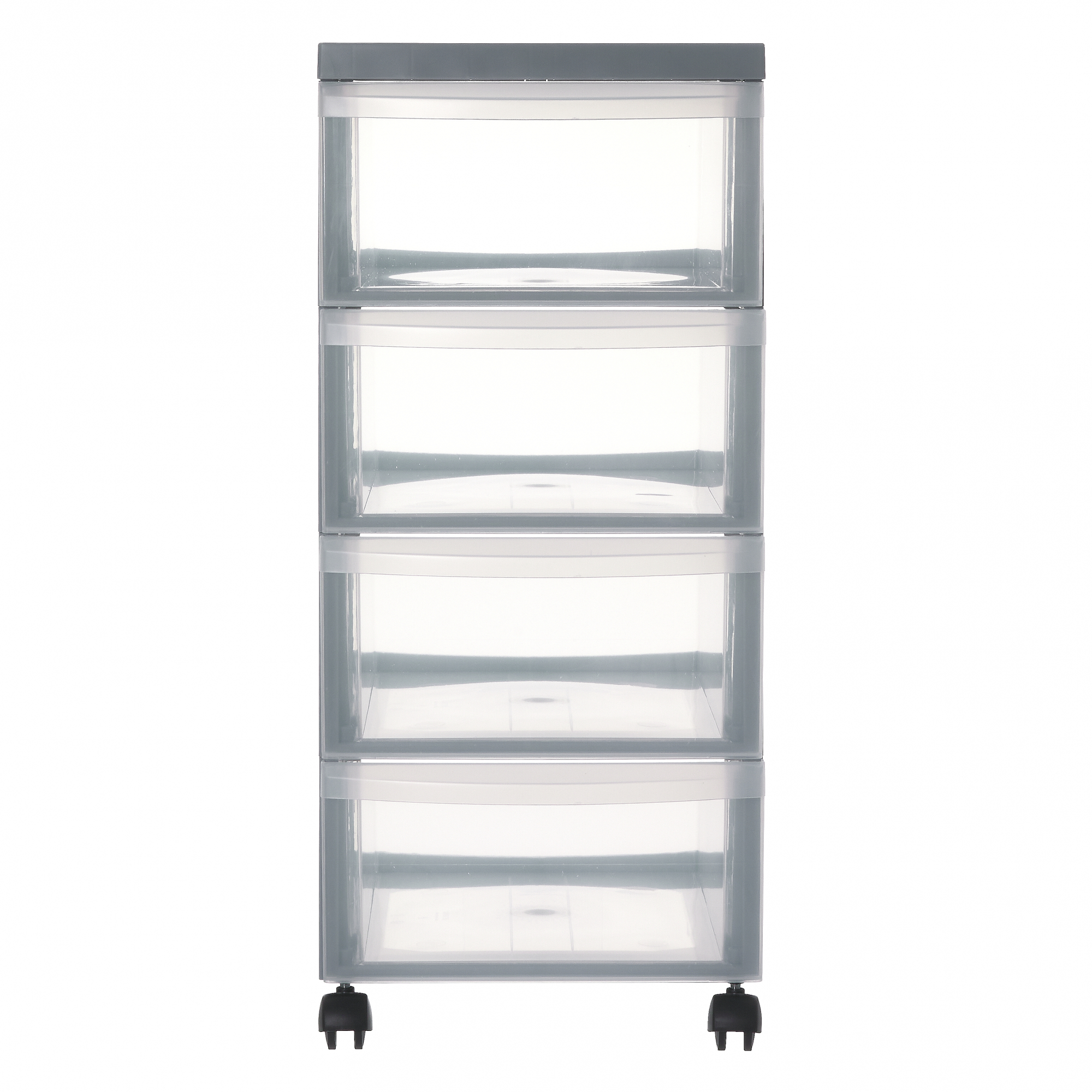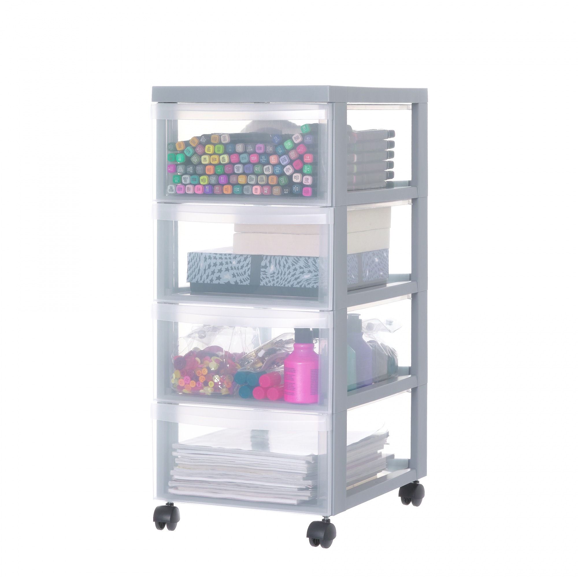 Iris Ohyama, Tour de rangement plastique, Tiroir rangement bureau de 4 x 11L, Sans BPA, DC-004, Gris- L4
