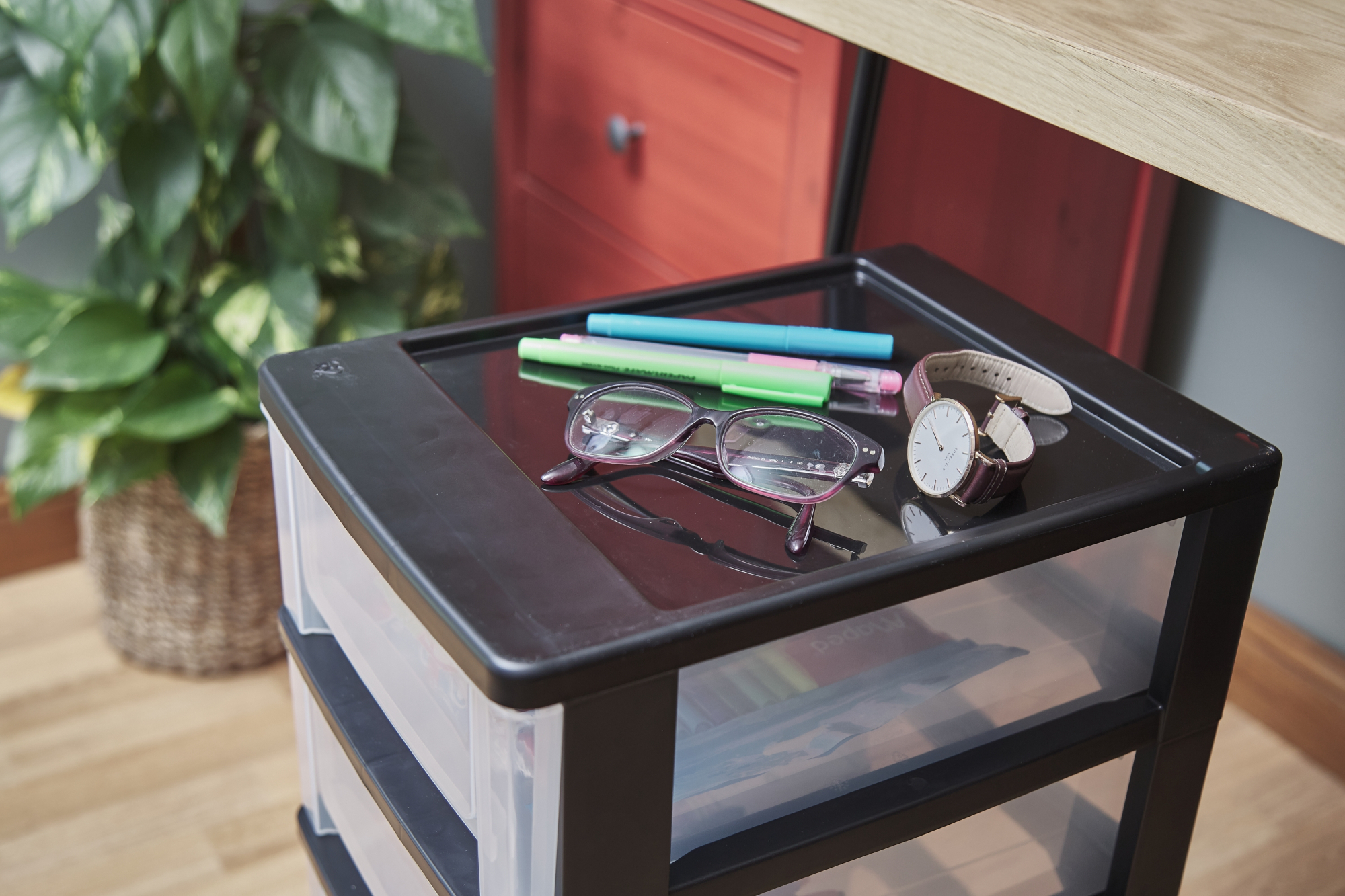 Iris Ohyama, Tour de rangement plastique, Tiroir rangement bureau de 7L, 5 Tiroirs, DDOCH-2005, Noir- L3