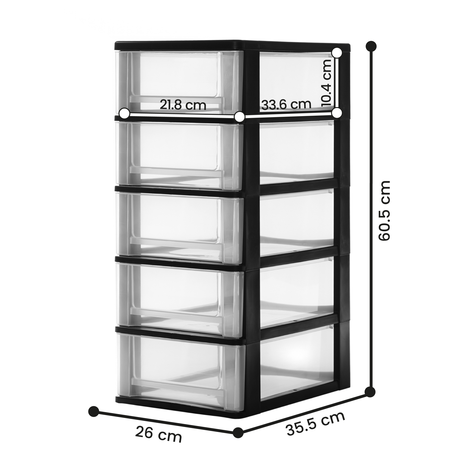 Libellé Iris Ohyama, Tour de rangement plastique, Tiroir rangement bureau de 7L, 5 Tiroirs, DDOCH-2005, Noir- L35.5 x P26 x H60.5 cm