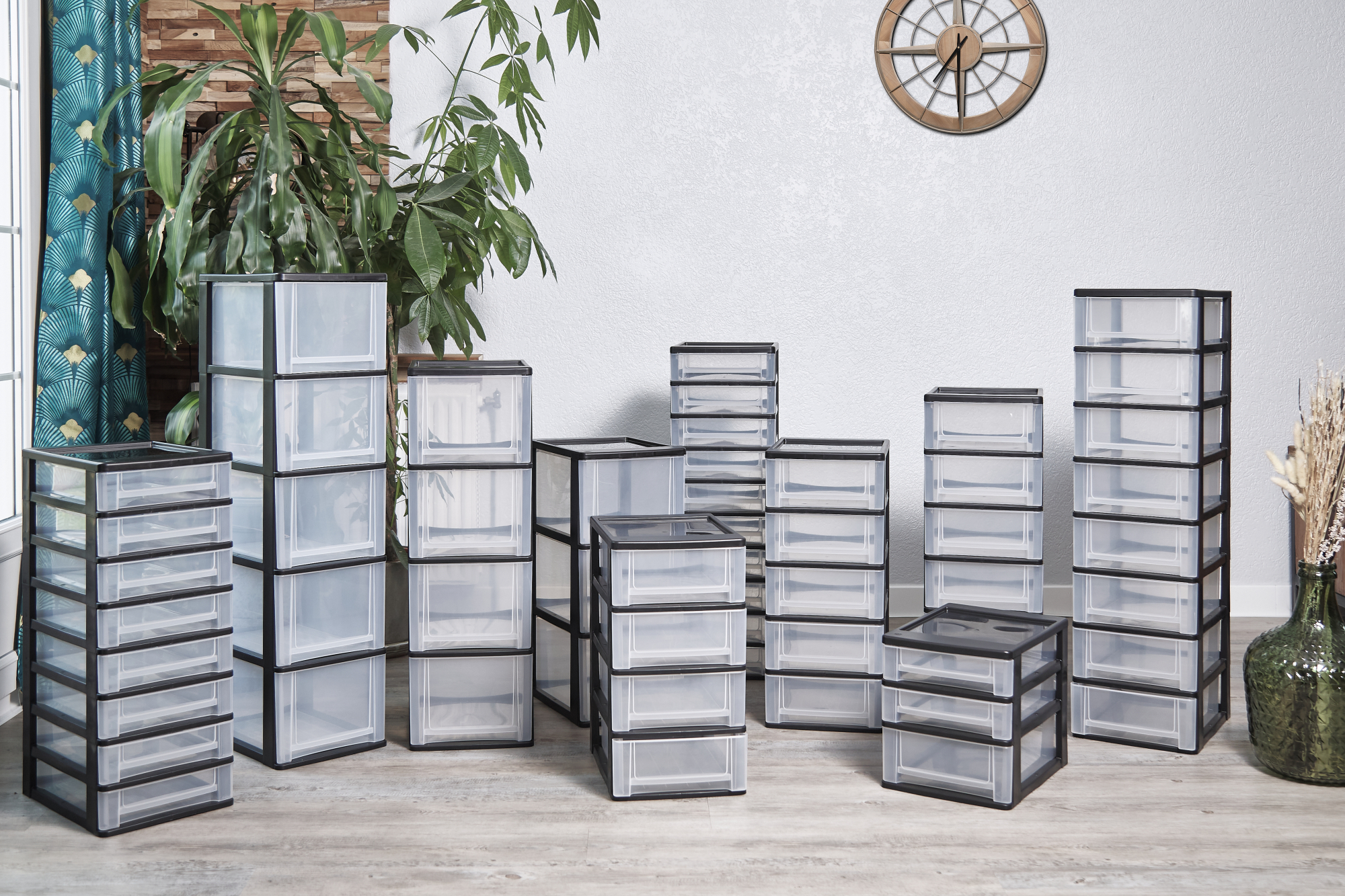 DIMENSIONS DE LA TOUR DE RANGEMENT : Externes : L26 x P35.5 x H96.5 cm|Internes (tiroirs) : L21.8 x P33.6 x H10.4 cm|Ce produit est une fabrication 100% européenne (usine située à Lieusaint, France). CAPACITÉ DE LA TOUR DE RANGEMENT PLASTIQUE: Le volume de contenance de chaque tiroir de ce produit est de 7L (8x7L). De plus, le poids de ce produit vide est de 3.1kg.De même, la capacité de cette commode de rangement plastique est suffisante pour stocker de nombreux articles comme des classeurs, des accessoires, livres. MATERIAU DE CASIERS DE RANGEMENT : Ce produit est fabriqué en plastique sans BPA (polypropylène). Cela garantit une résistance aux chocs et aux coups ainsi qu'un nettoyage simple de la boîte de rangement avec couvercle. POIGNÉE INTÉGRÉE ERGONOMIQUE SOUS LES TIROIRS : Pour facilité l'usage quotidien de ce produit, il a été doté des poignées intégrées. Aussi, ces tiroirs avec une grande capacité de stockage vous permettra de ranger des outils aux formats A4,A5 et A6. DESIGN DE TOUR DE RANGEMENT : Le style comptemporain et classique de ce produit lui confère un aspect simple grâce à sa forme le rendant approprié dans un bureau , des salles d' étude, un salon. Son côté Multi- fonction et la conception de tiroirs vous évitera tout souci d'espace, pour le stockage. CONTENU DE LA LIVRAISON : 1 Tour de rangement Sans roues. Ce produit est livré dans un emballage conforme aux normes.
