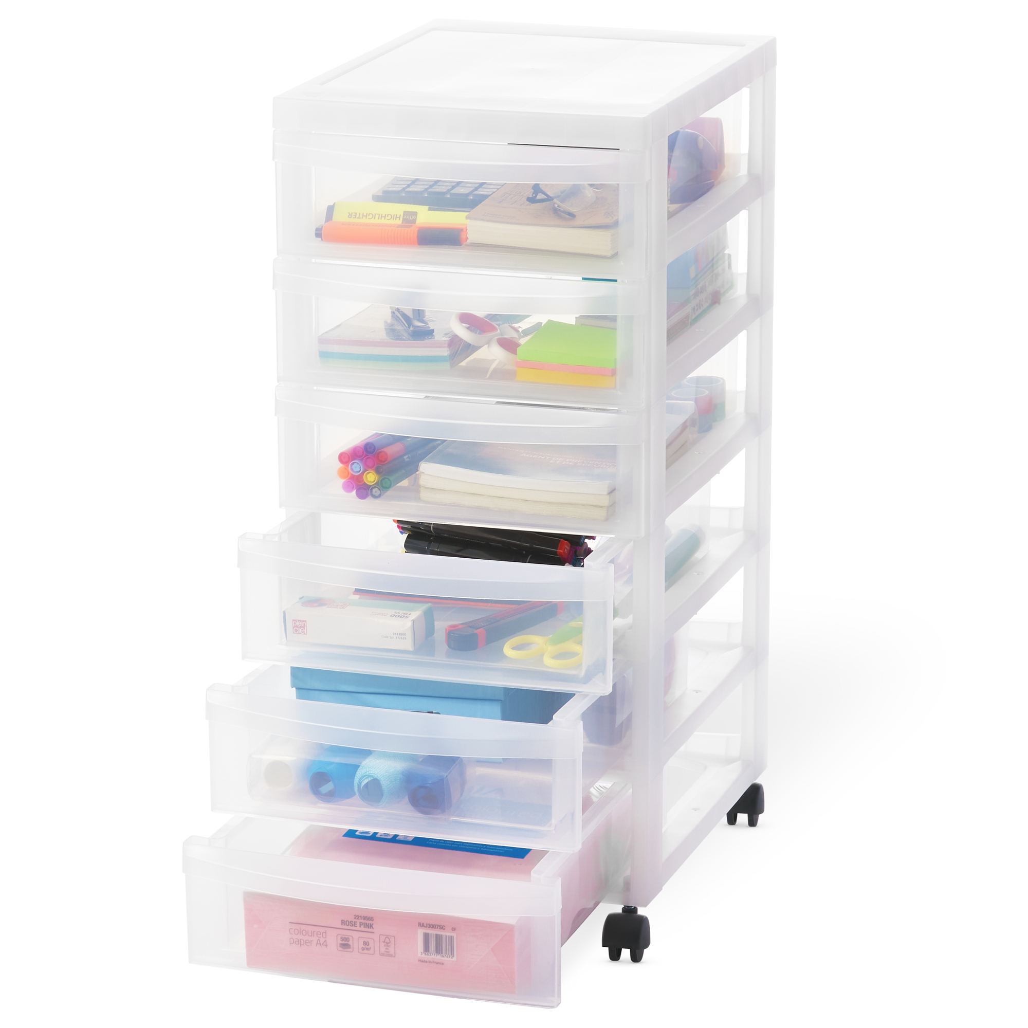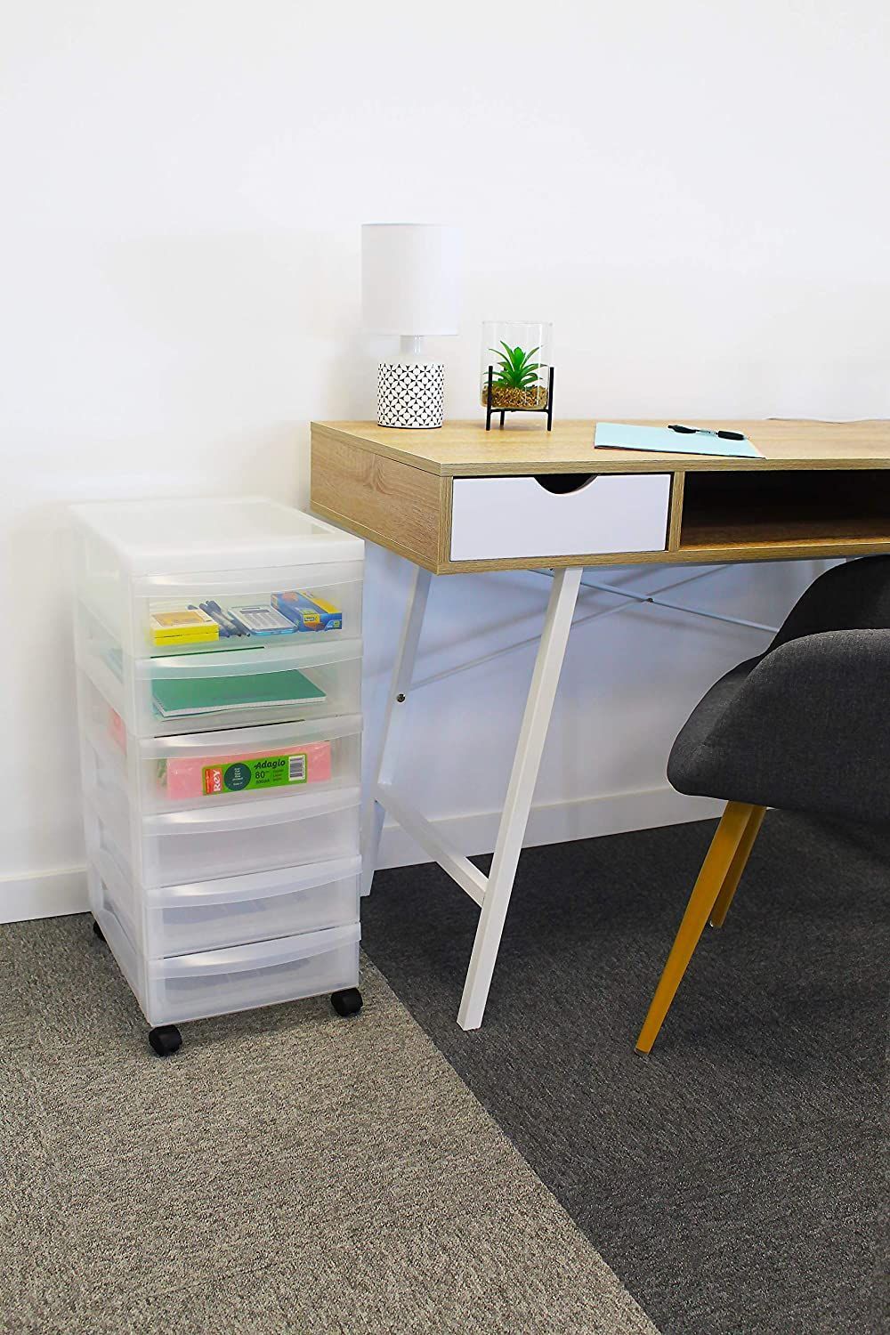 Iris Ohyama, Tour de rangement plastique, Tiroir rangement bureau de 7L, 6 Tiroirs, DC-360, Blanc- L40 x