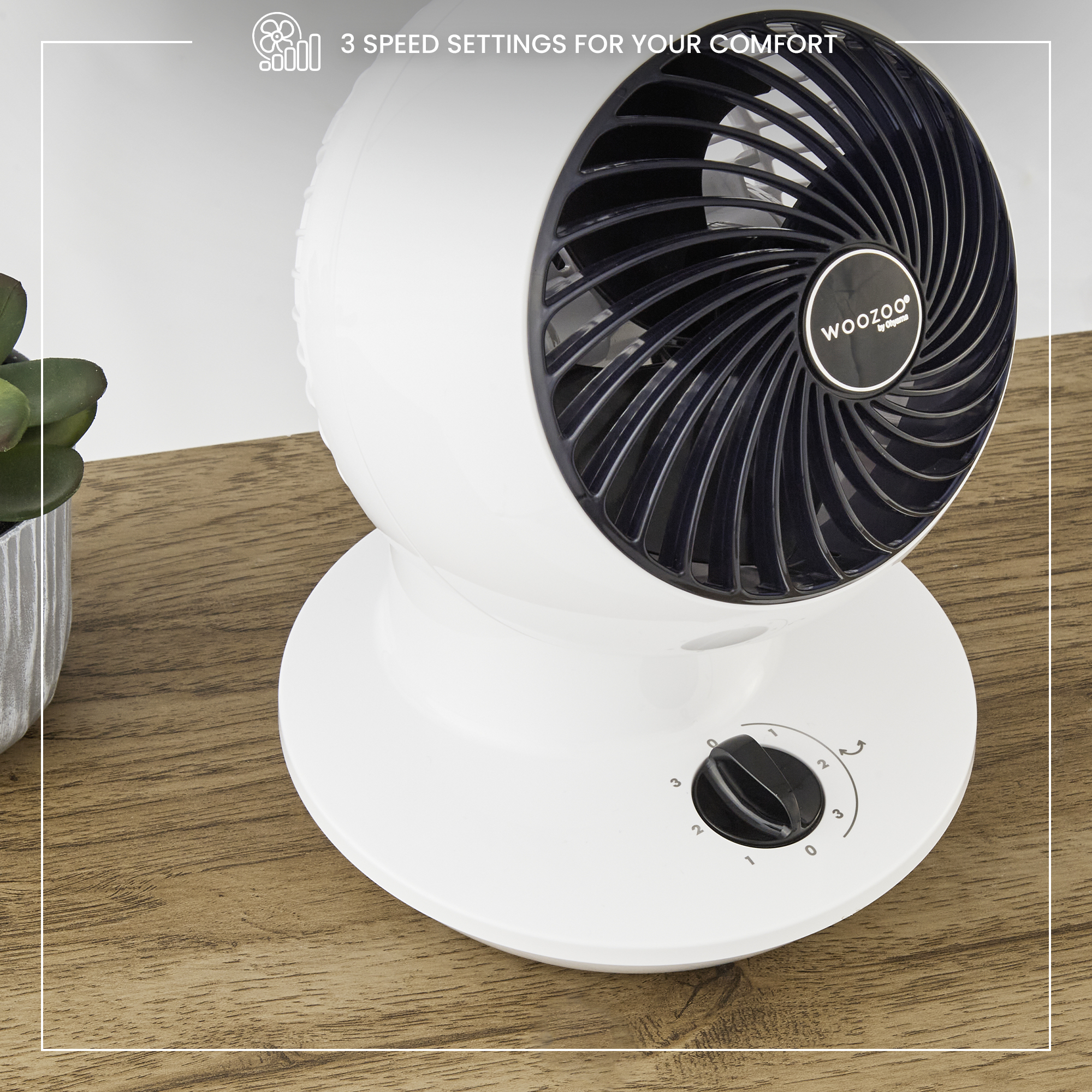 Libellé Iris Ohyama Woozoo, Ventilateur de Table, 11m², Blanc, 3 Vitesses, Silencieux, Oscillation, pour Bureau, Chambre, Salon, Cuisine, Circulateur