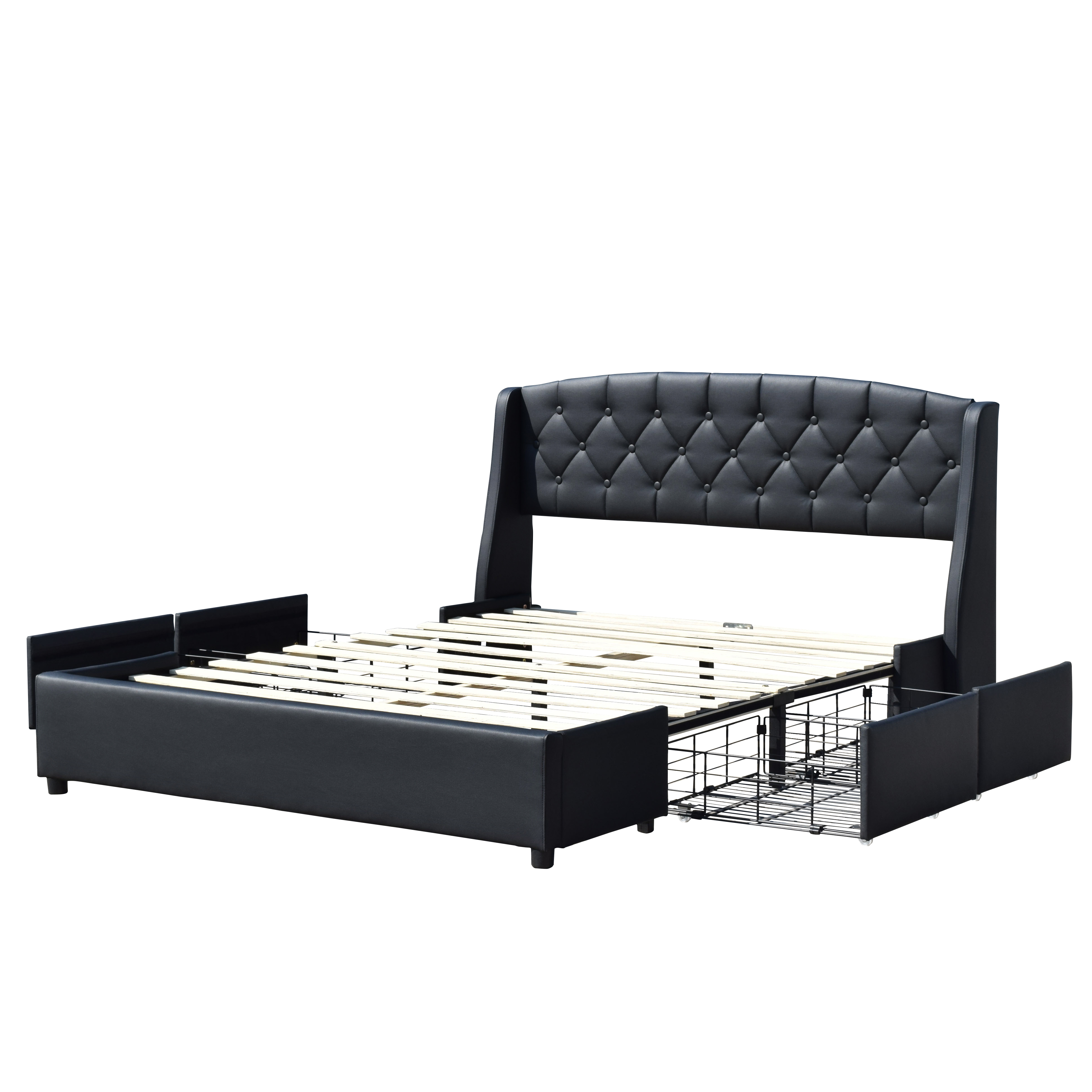 | Libellé | iris - Solide et Confortable Lit 160x200 avec Sommier avec 4 tiroirs + Tete de lit Couleur NOIR + Pieds en 4 cm - 2x13 Lattes - revetement PVC Simili |