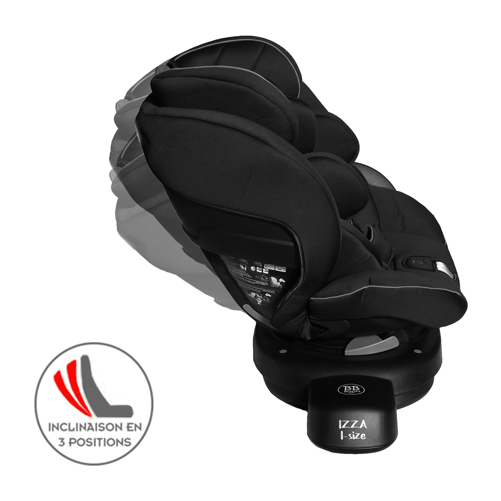 IZZA SIÈGE-AUTO DE 0 À 22 KG PIVOTANT À 360° I-SIZE ISOFIX AVEC JAMBE DE FORCE, DE LA NAISSANCE JUSQU'À 105 CM (22 kg max.). Existe en différents coloris, avec ou sans canopy. De 40 à 87 cm dos à la route. De 76 à 105 cm face à la route. CARACTÉRISTIQUES : Le siège-auto IZZA, marque BB BOOM, dispose de la nouvelle norme ECE R129 I-size qui offre un niveau de sécurité supérieur à la norme précédente ECE R44. Le siège-auto n'est plus catégorisé selon le poids de l'enfant mais en fonction de sa taille. Cette nouvelle norme rend obligatoire l'installation de l'enfant dos à la route jusqu'à ses 15 mois (soit jusqu'à 87 cm). Le siège-auto IZZA est conçu pour suivre la croissance de l'enfant, de la naissance jusqu'à 105 cm (22 kg). Ce siège-auto dispose d'un harnais à 5 points muni de 2 coussinets confortables qui limitent les frottements. Des réducteurs épais, amovibles et ultra doux offrent un confort optimal aux nouveaux nés mesurant jusqu'à 60 cm. Ce siège dispose d'une canopy amovible (pare-soleil). La housse du siège-auto est déhoussable (boutons pressions) et lavable en machine à 30°. Le siège-auto pivote latéralement à 360°. Bien pratique pour installer l'enfant sur son siège sans effort et effectuer les rotations pour le positionner face ou dos à la route, selon sa taille. Le dossier s'incline sur 3 positions (assise - couchée). L'appui-tête est réglable en hauteur. Grâce aux protections latérales renforcées (side protection), la tête, le corps et les hanches de l'enfant sont encore davantage protégés en cas de collision. Le siège IZZA dispose du système de fixation ISOFIX. Un voyant vert confirme la bonne installation des fixations. Ce siège-auto est également équipé d'une jambe de force fixée à la base du siège. Réglable en hauteur, cette jambe de force prend appuie sur le plancher du véhicule pour stabiliser le siège. Un voyant vert indique sa bonne installation. DIMENSIONS ET POIDS : Longueur 42 x Largeur 67 x Hauteur sans canopy 62 cm ou 79 cm avec la canopy Dossier réglable en hauteur : de 37 à 51 cm Poids : 11 kg