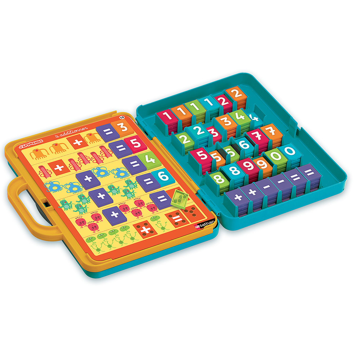 | La boîte contient | - Une mallette - 15 planches - 72 jetons de chiffres et signes |