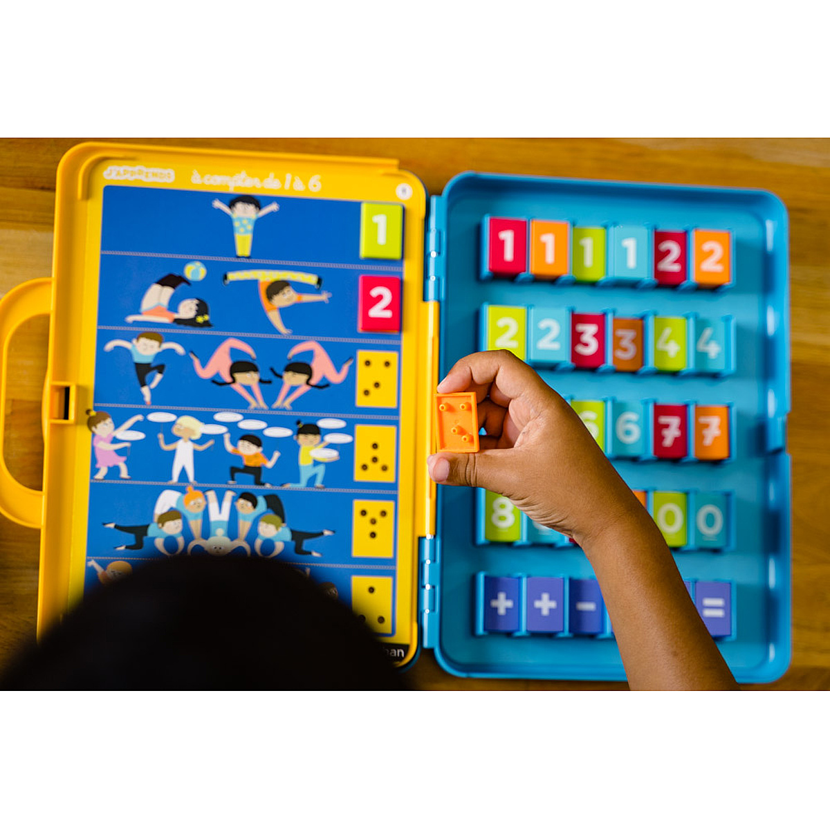 Un jeu pour apprendre à compter et à calculer en s'amusant. L'enfant découvre les nombres jusqu'à 12, puis il effectue ses premières opérations pour s'entraîner: additions, soustractions, multiplications Un seul chiffre s'imbrique: c'est le bon!