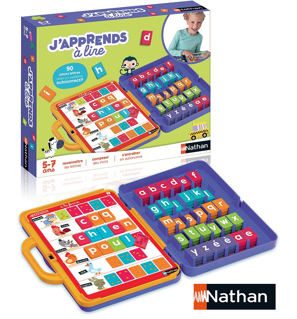 Un jeu pour apprendre à lire en s'amusant. L'enfant compose 90 mots différents en complétant les planches à l'aide des jetons lettres. Une seule lettre s'imbrique : c'est la bonne!